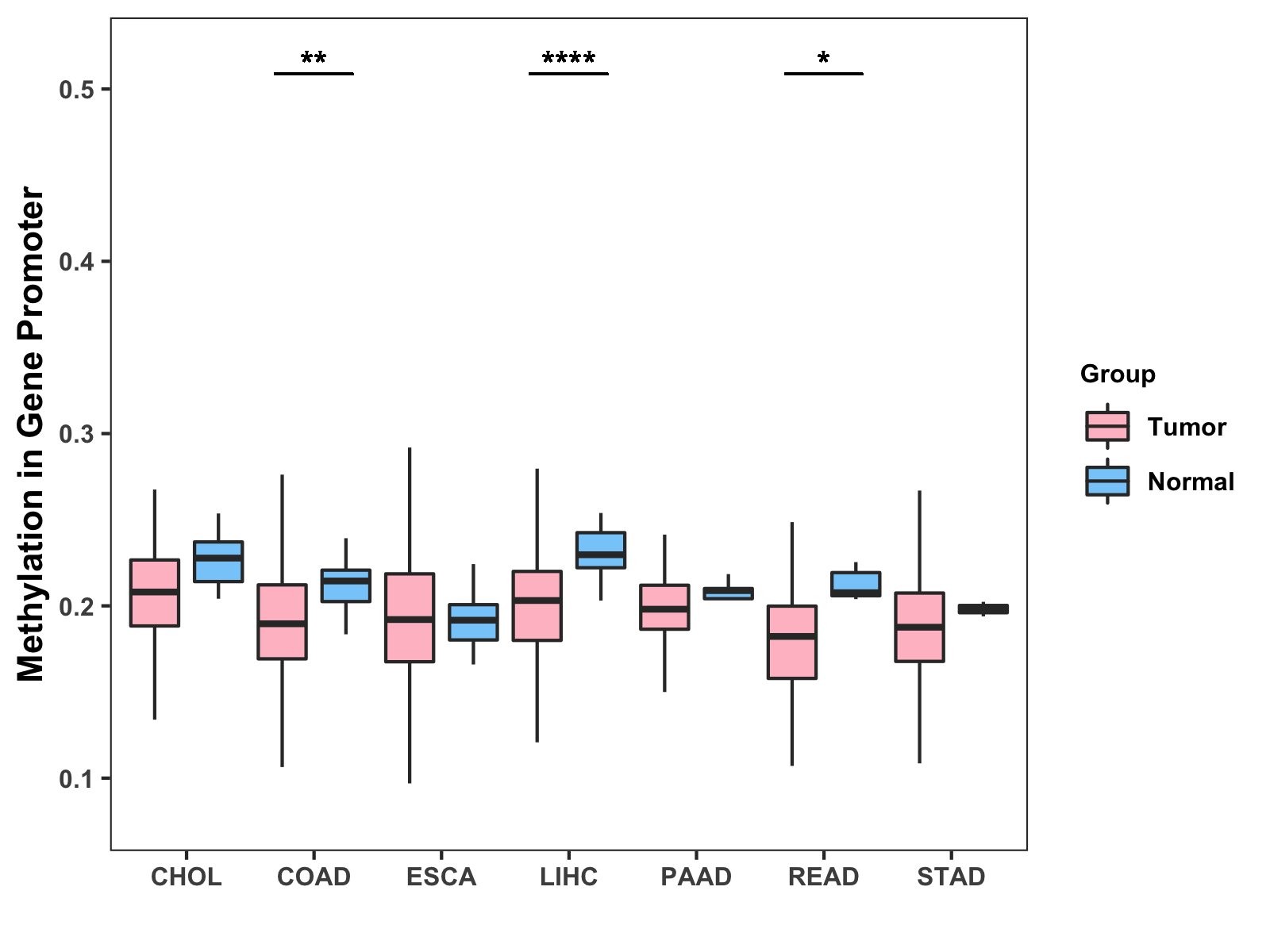 Methylation Level in Colon Cancer MODERATE Methylation Level in Rectum Cancer MODERATE
