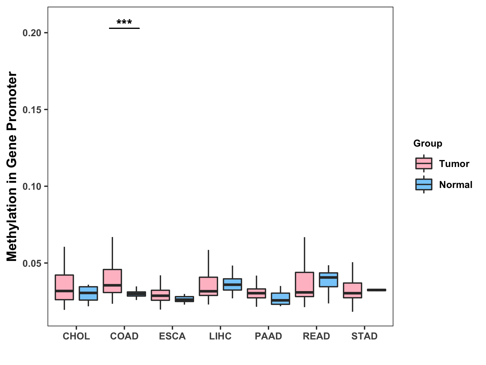 Boxplot of All Gastrointestinal Cancer ( * : 0.01-0.05 , ** : 0.005-0.01 , *** : 0.0001-0.005 , **** : < 0.0001 ) |