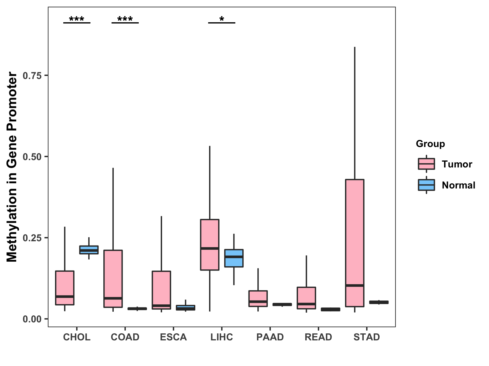Methylation Level in Colon Cancer MODERATE Methylation Level in Rectum Cancer MODERATE