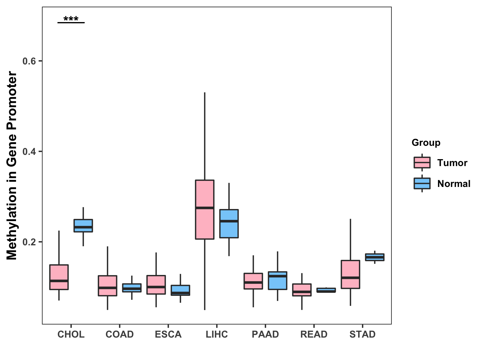 Methylation Level in Colon Cancer MODERATE Methylation Level in Rectum Cancer MODERATE