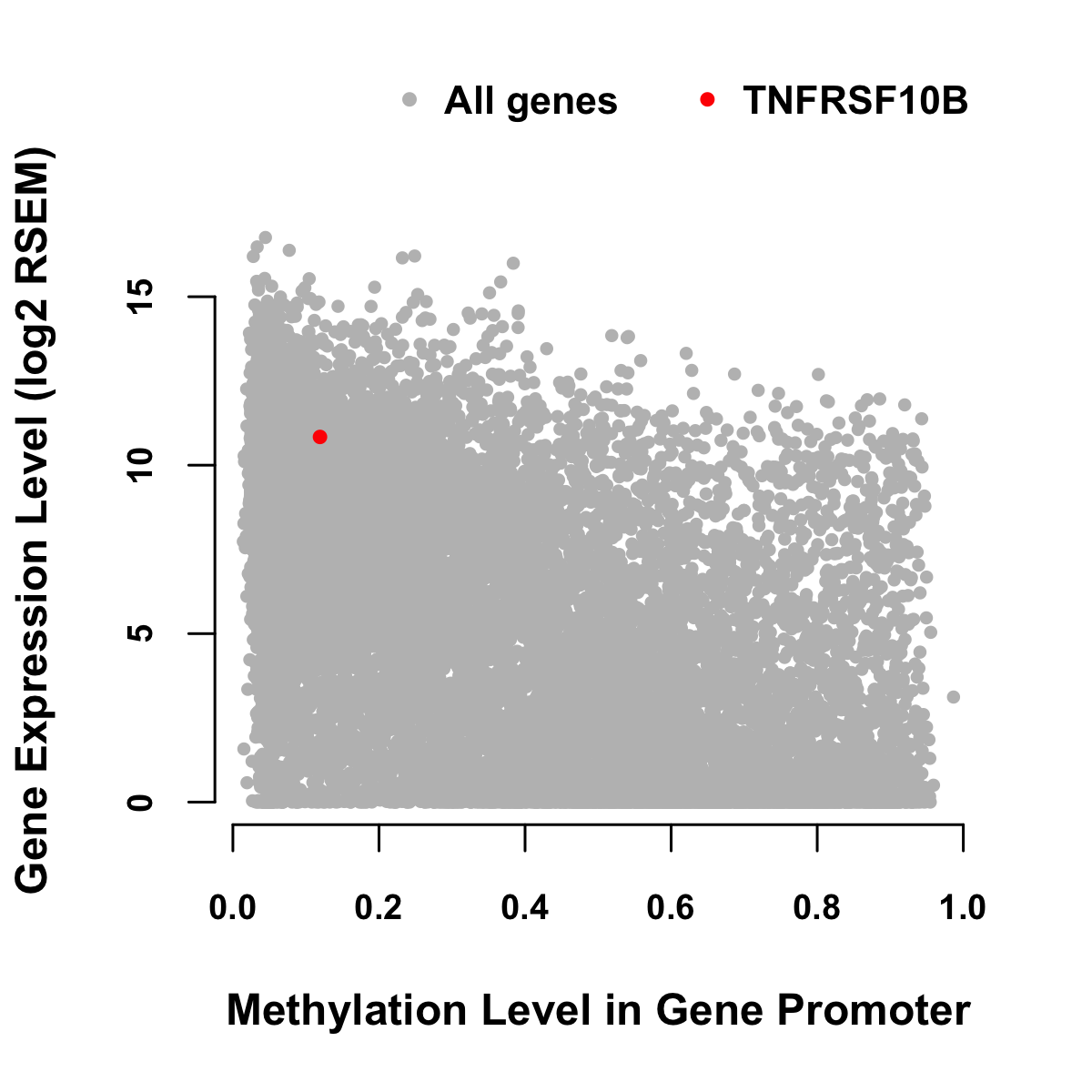 Expression-Methylation Scatter Plot in Colon Cancer Expression-Methylation Scatter Plot in Rectum Cancer
