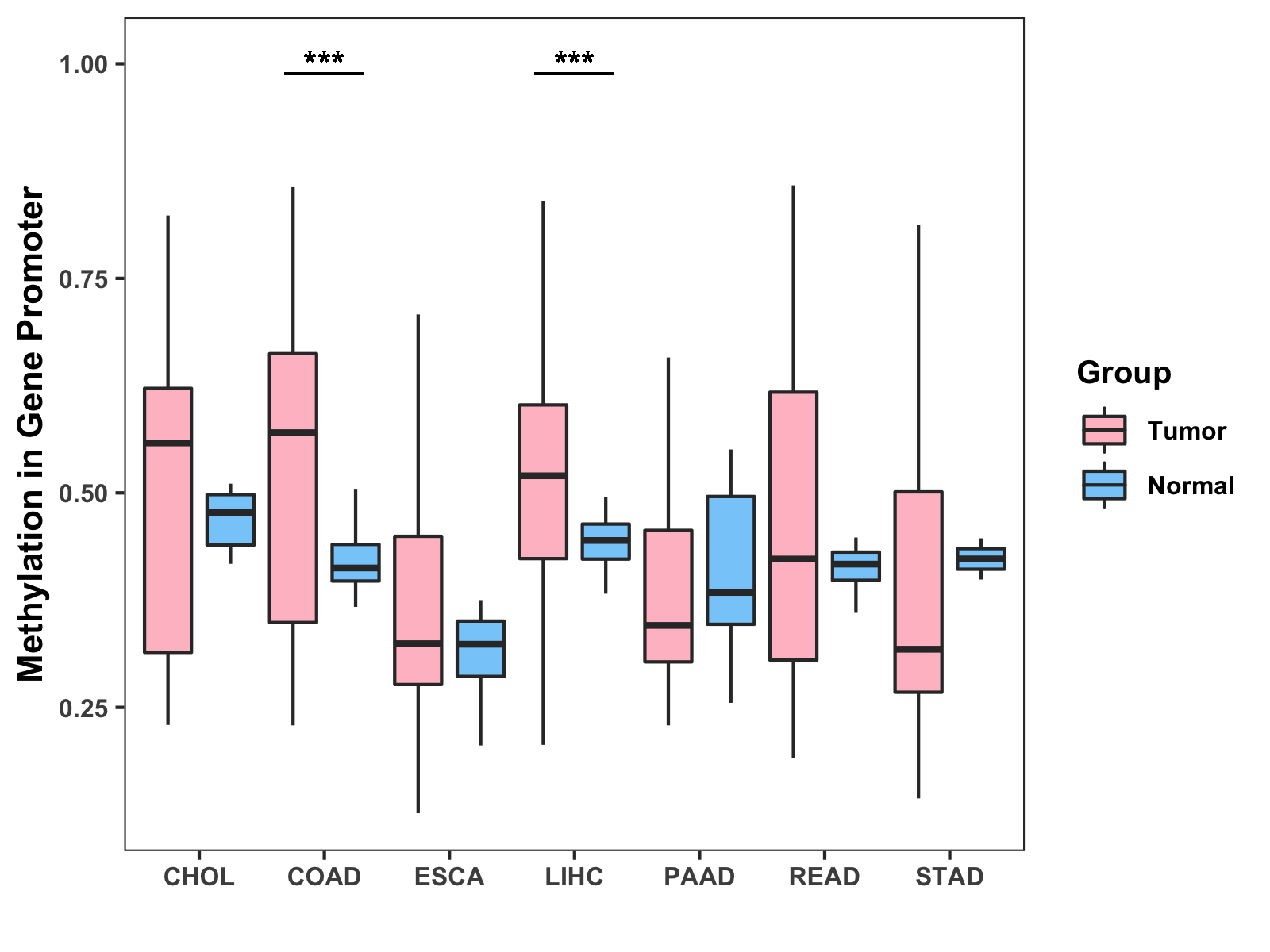Methylation Level in Colon Cancer HIGH Methylation Level in Rectum Cancer MODERATE