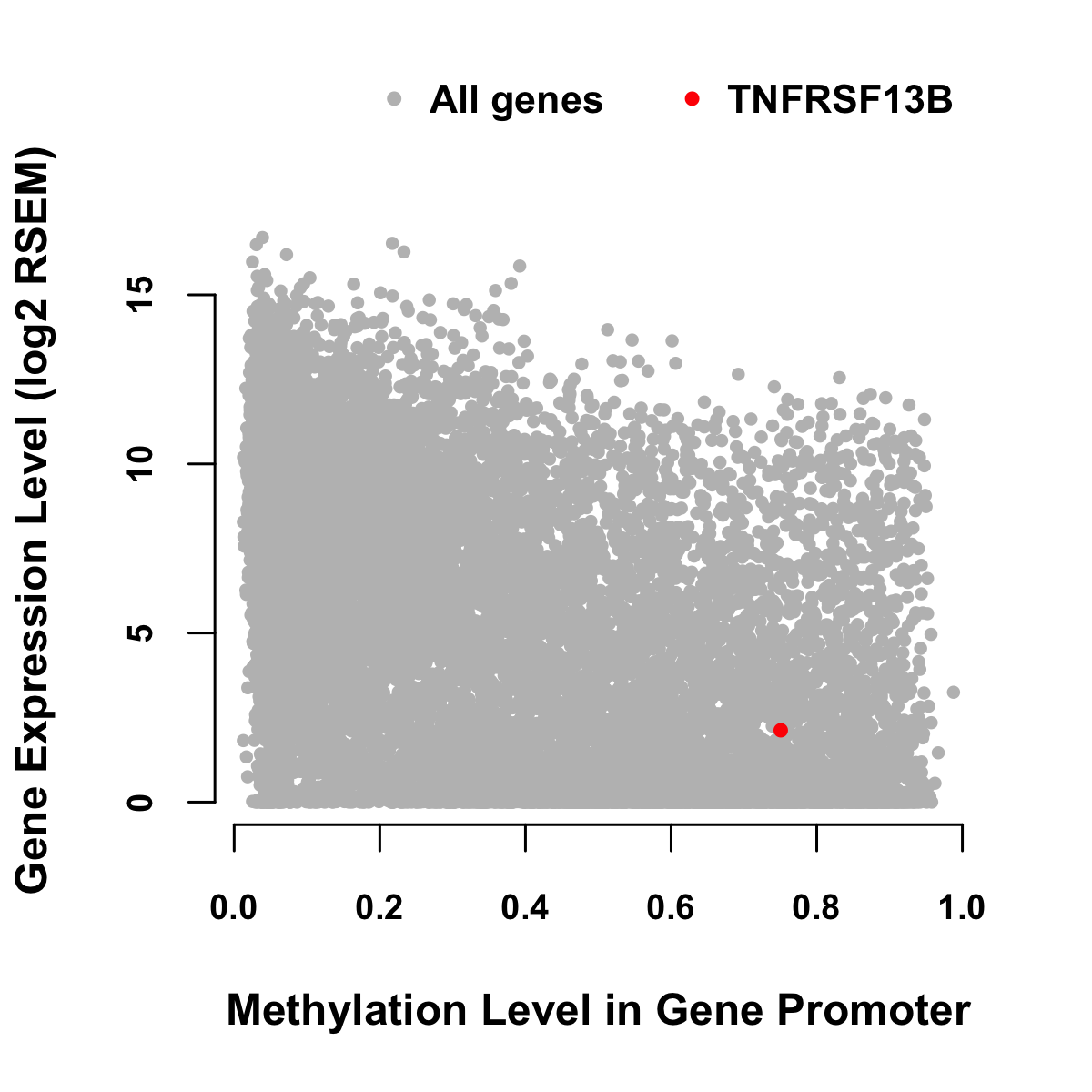 Expression-Methylation Scatter Plot in Colon Cancer Expression-Methylation Scatter Plot in Rectum Cancer