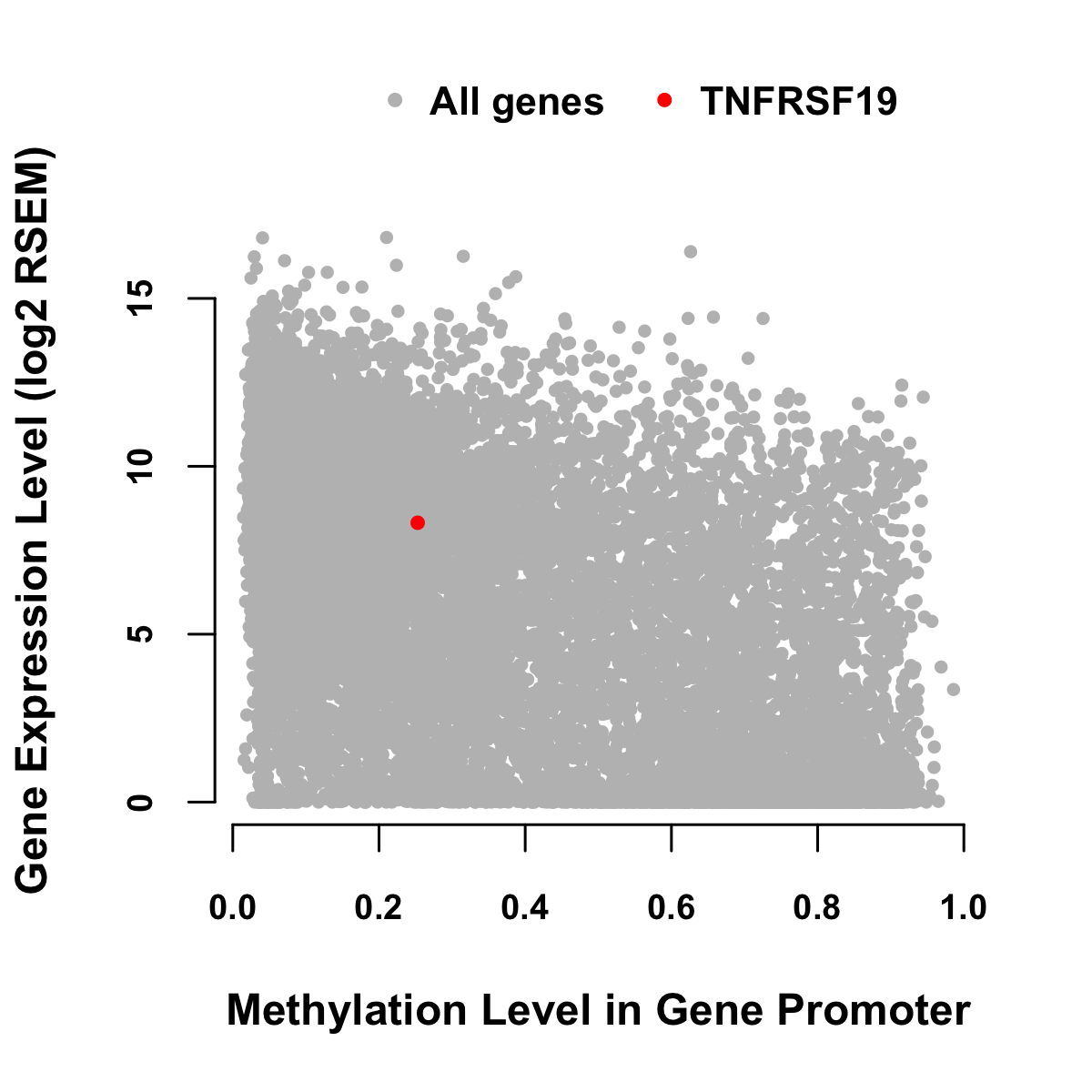 | Box Plot in Pancreatic Cancer | Expression-Methylation Scatter Plot in Pancreatic Cancer |