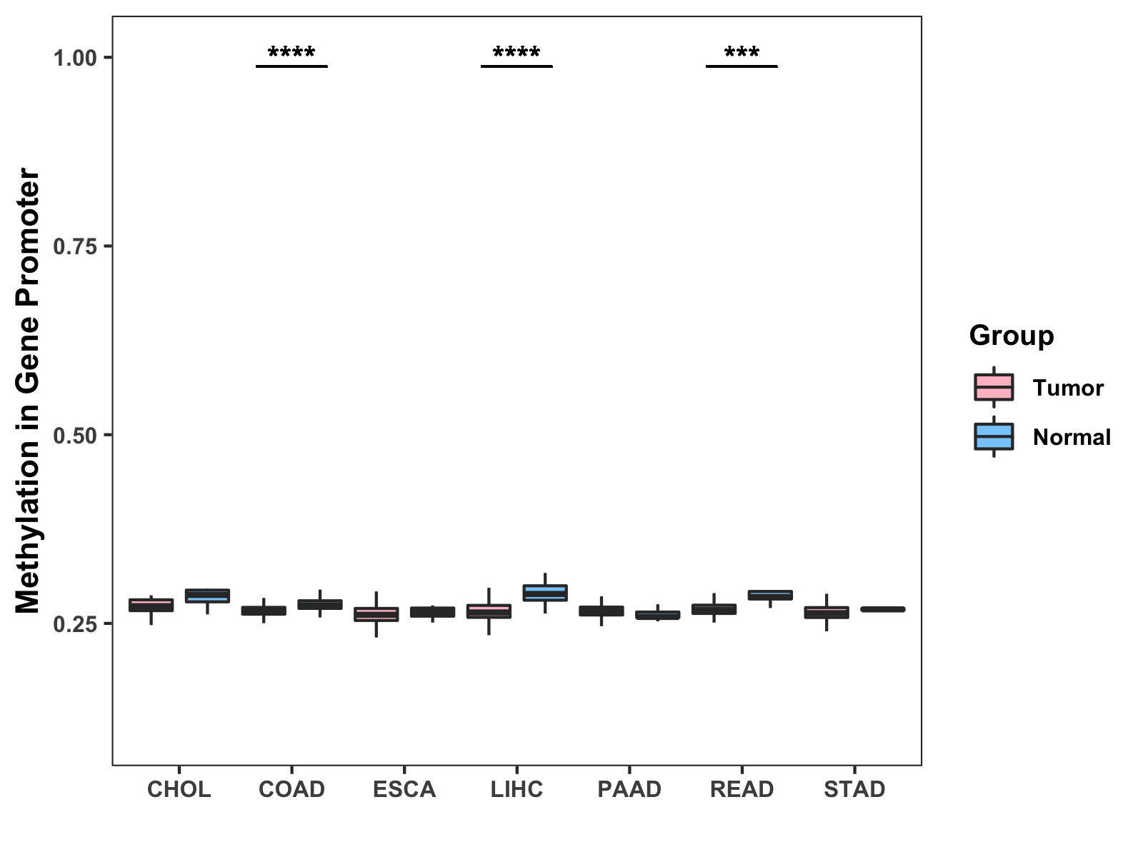 Methylation Level in Colon Cancer MODERATE Methylation Level in Rectum Cancer MODERATE