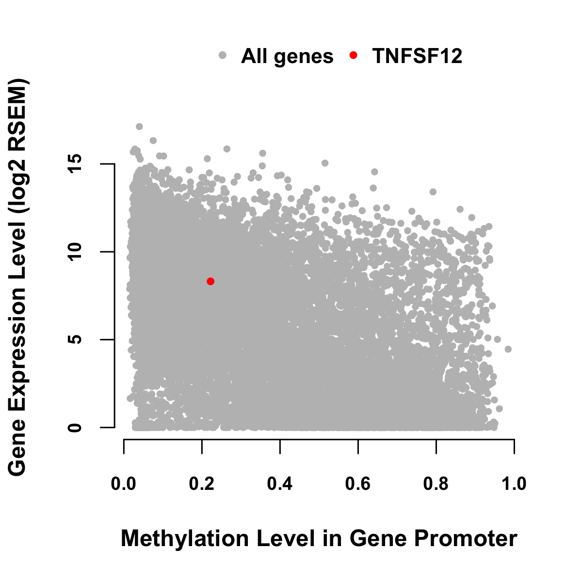| Box Plot in Stomach Cancer | Expression-Methylation Scatter Plot in Stomach Cancer |