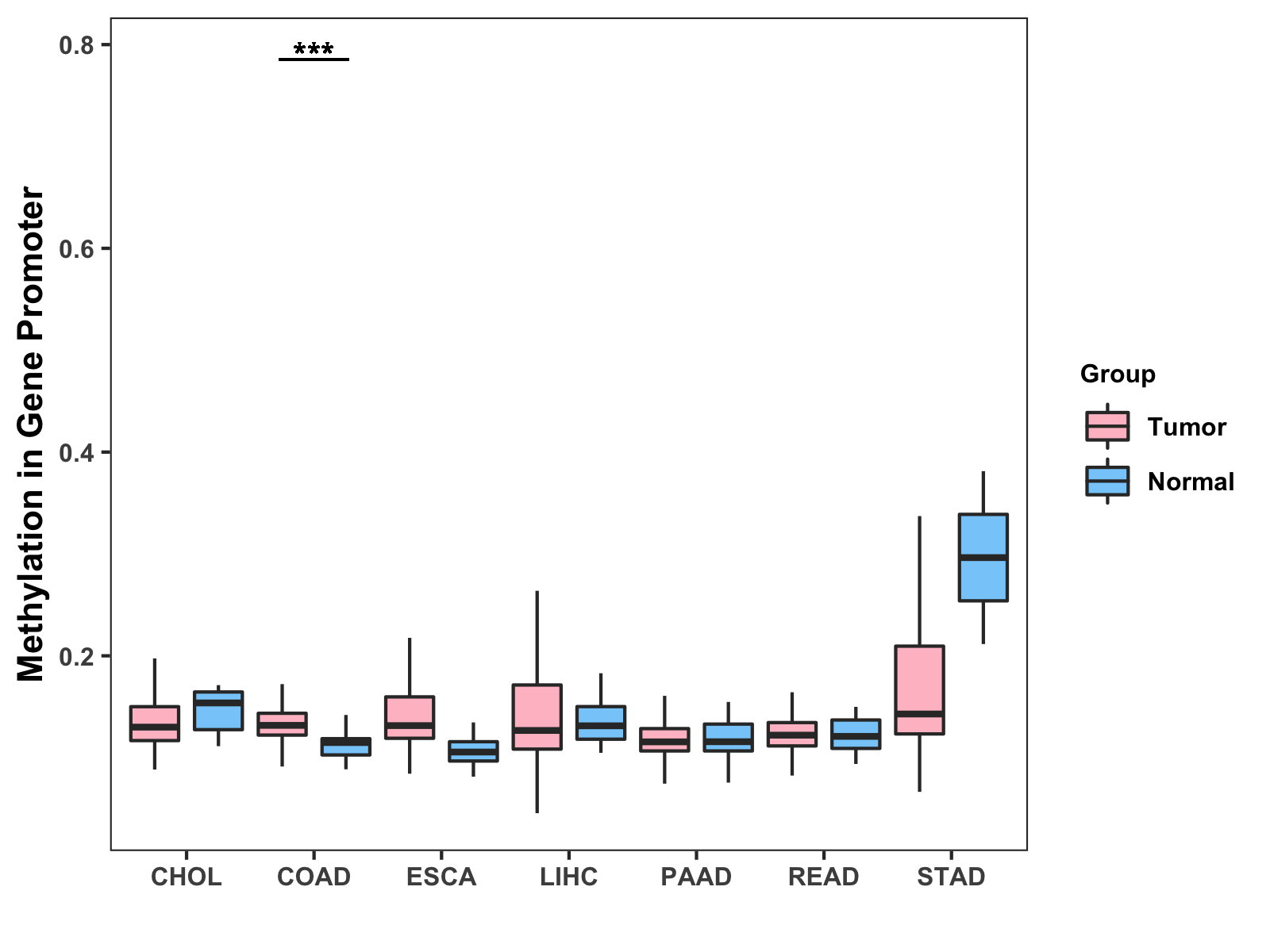 Boxplot of All Gastrointestinal Cancer ( * : 0.01-0.05 , ** : 0.005-0.01 , *** : 0.0001-0.005 , **** : < 0.0001 ) |