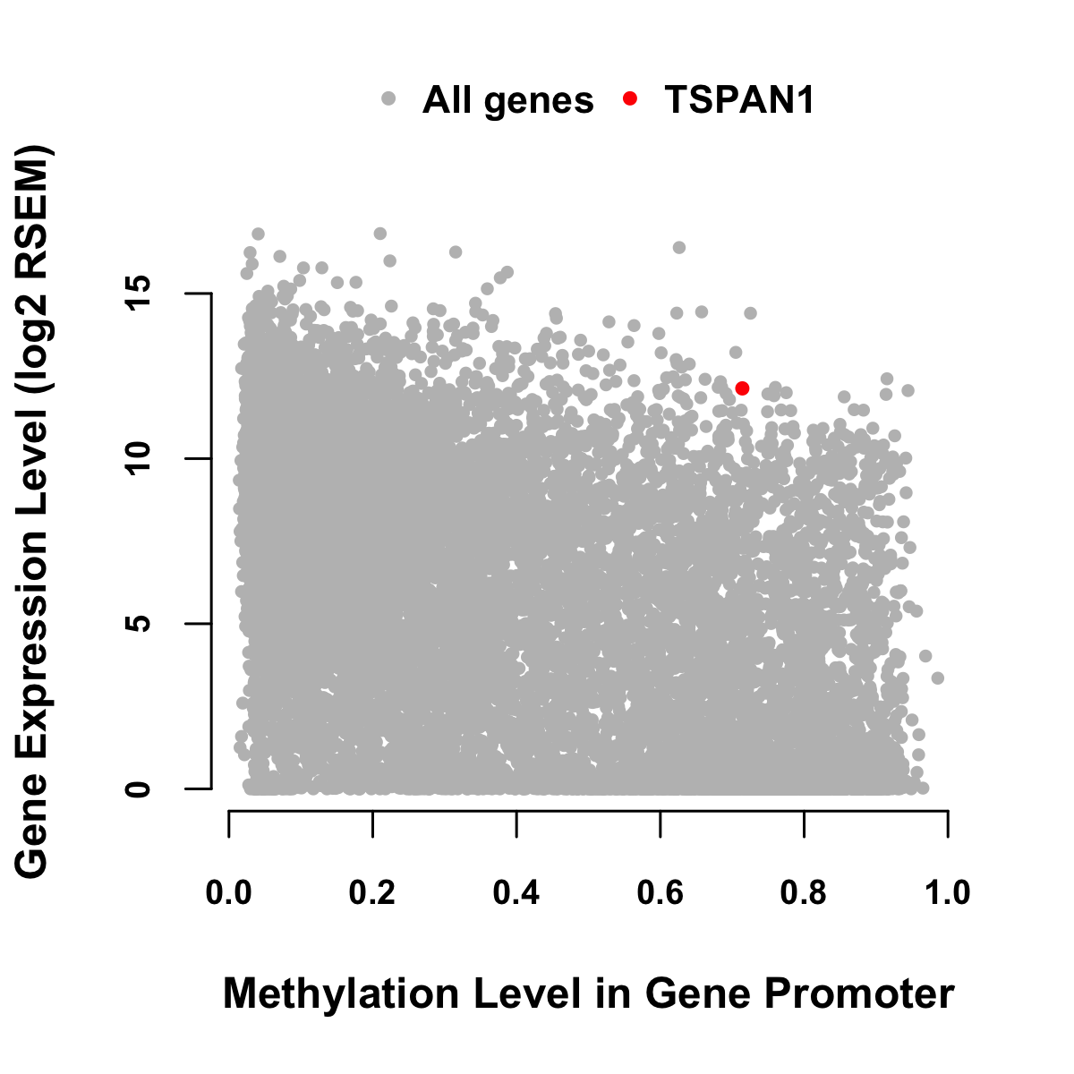 | Box Plot in Pancreatic Cancer | Expression-Methylation Scatter Plot in Pancreatic Cancer |