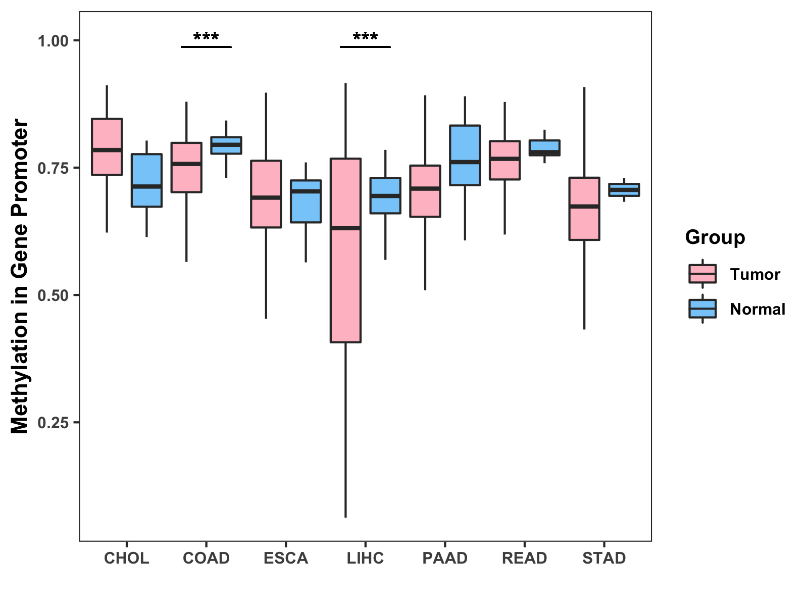 Boxplot of All Gastrointestinal Cancer ( * : 0.01-0.05 , ** : 0.005-0.01 , *** : 0.0001-0.005 , **** : < 0.0001 ) |