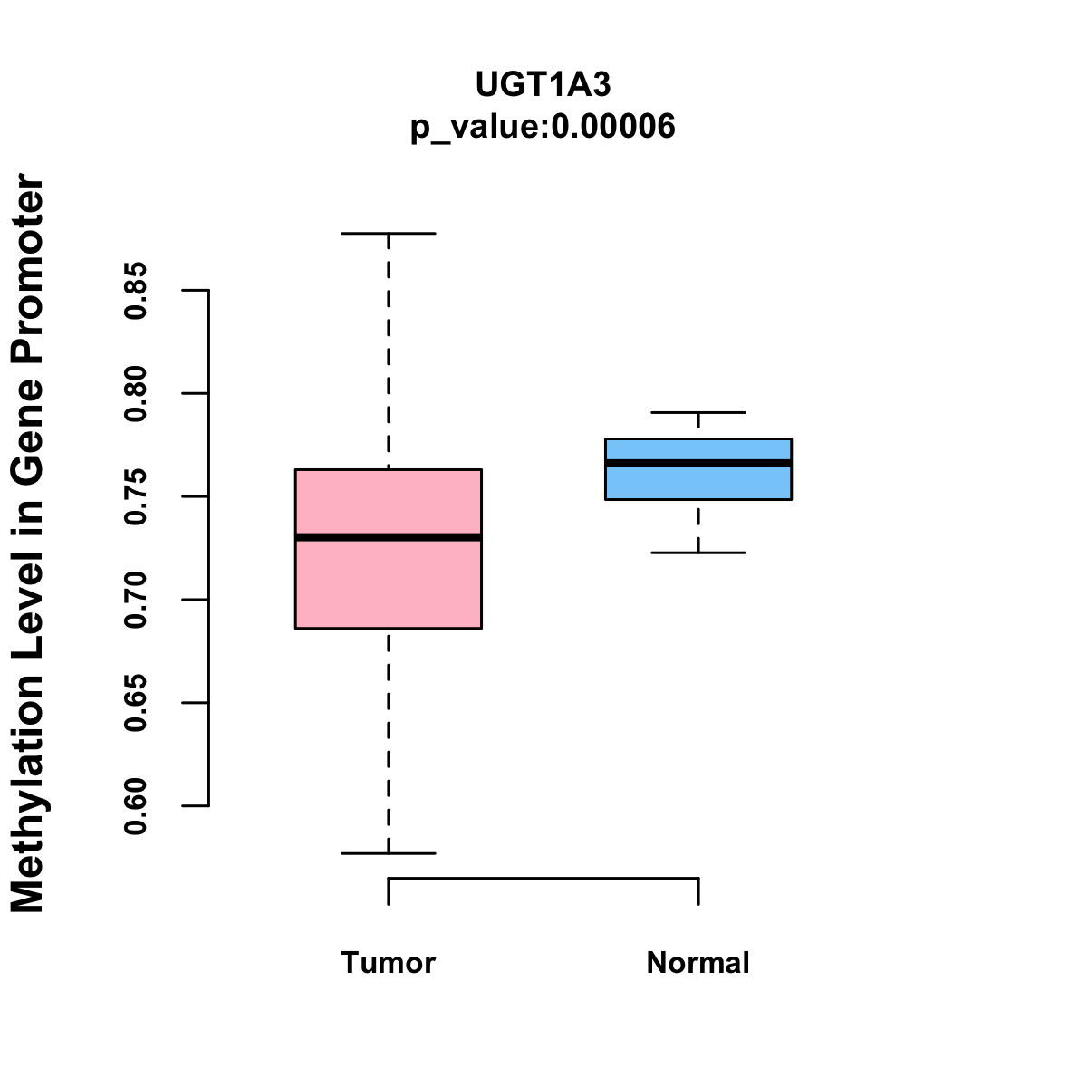 | Box Plot in Liver Cancer | Expression-Methylation Scatter Plot in Liver Cancer |