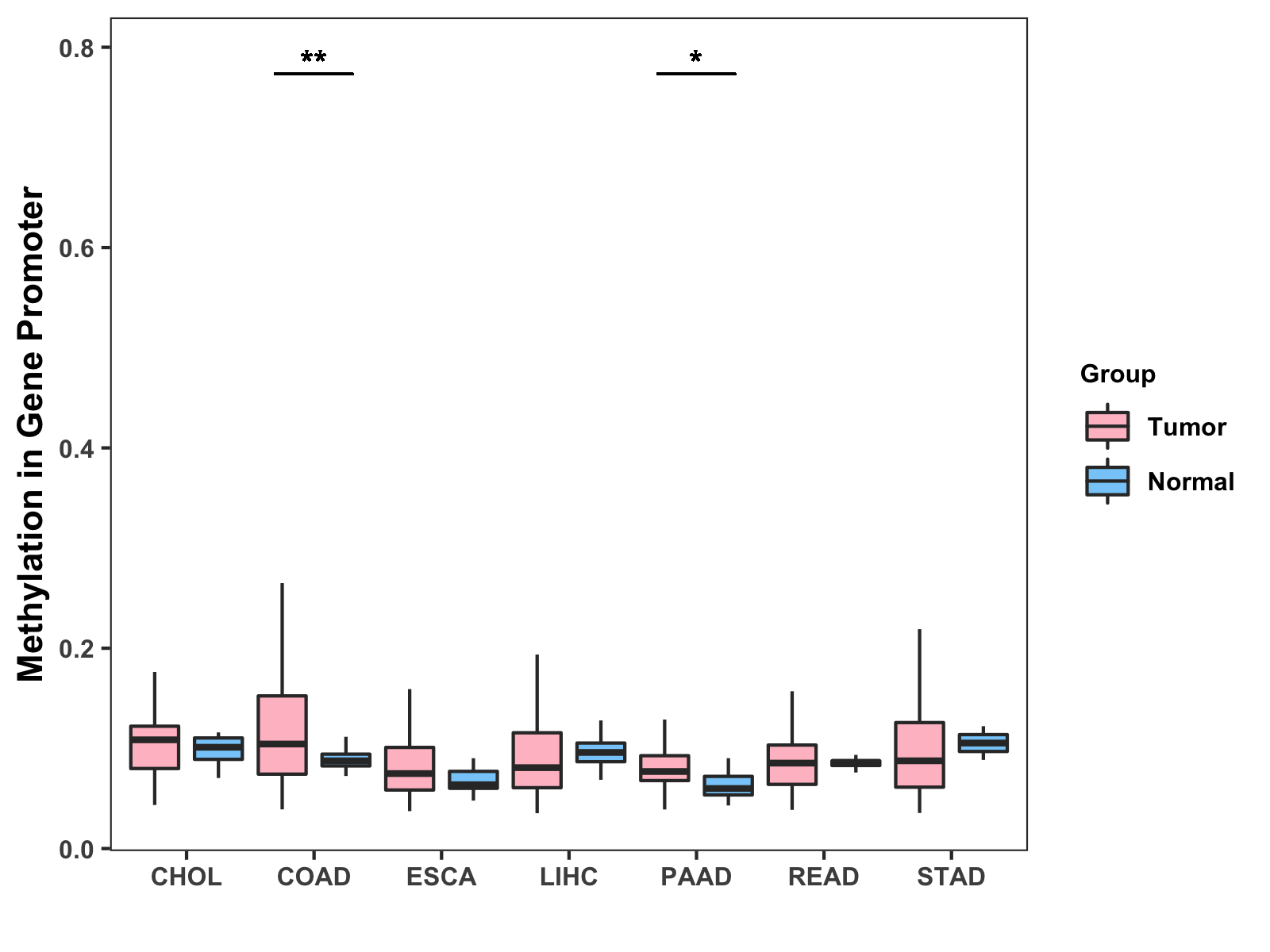 Methylation Level in Colon Cancer MODERATE Methylation Level in Rectum Cancer MODERATE