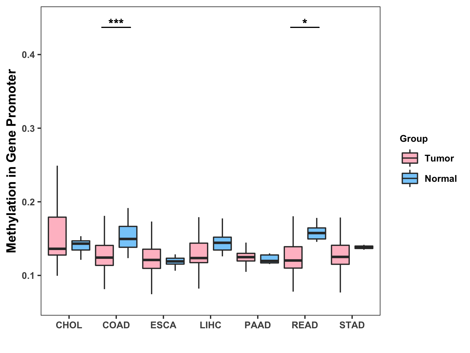 Boxplot of All Gastrointestinal Cancer ( * : 0.01-0.05 , ** : 0.005-0.01 , *** : 0.0001-0.005 , **** : < 0.0001 ) |