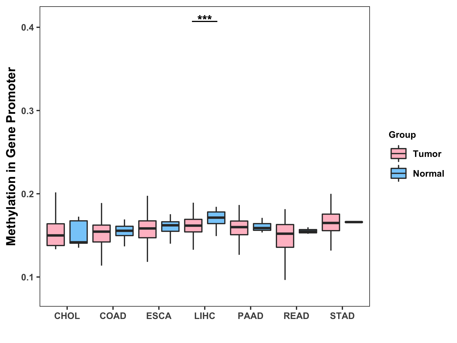 Methylation Level in Colon Cancer MODERATE Methylation Level in Rectum Cancer MODERATE