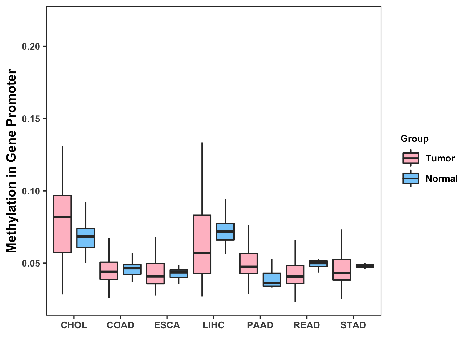 Methylation Level in Colon Cancer MODERATE Methylation Level in Rectum Cancer MODERATE