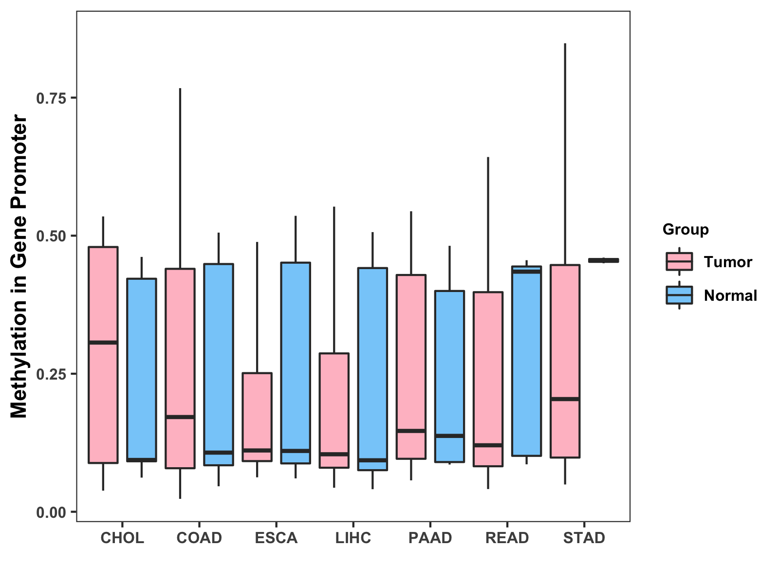 Boxplot of All Gastrointestinal Cancer ( * : 0.01-0.05 , ** : 0.005-0.01 , *** : 0.0001-0.005 , **** : < 0.0001 ) |