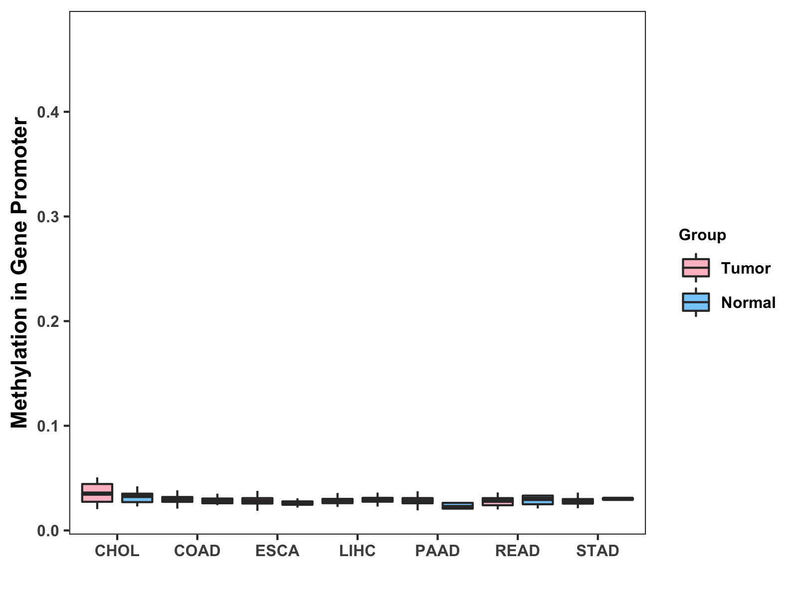 | Box Plot in Stomach Cancer | Expression-Methylation Scatter Plot in Stomach Cancer |