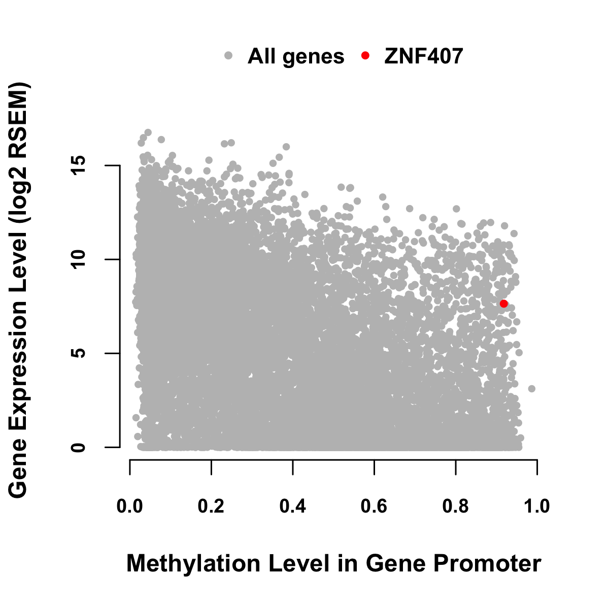 Expression-Methylation Scatter Plot in Colon Cancer Expression-Methylation Scatter Plot in Rectum Cancer