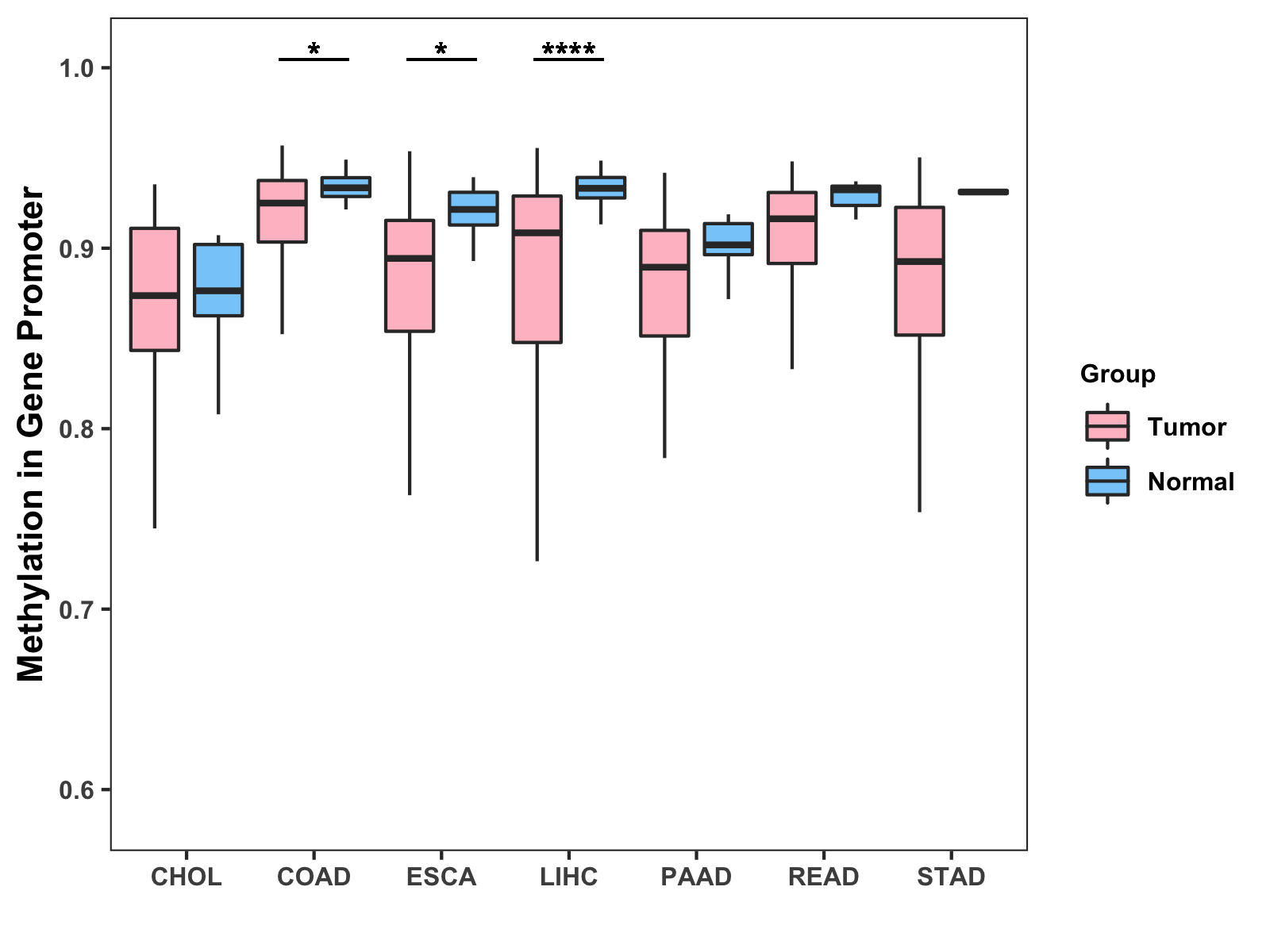 Methylation Level in Colon Cancer MODERATE Methylation Level in Rectum Cancer MODERATE