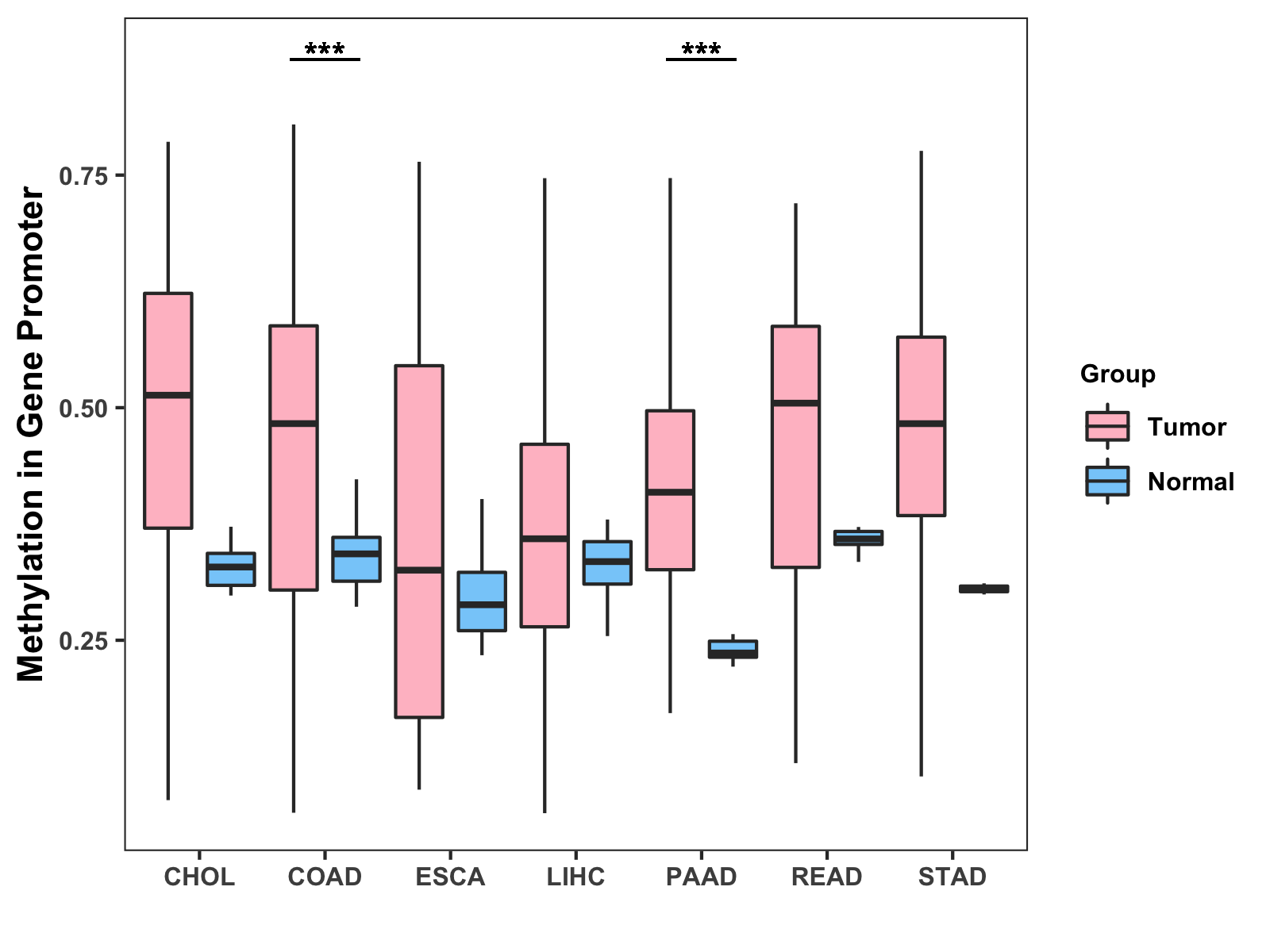 Methylation Level in Colon Cancer HIGH Methylation Level in Rectum Cancer MODERATE