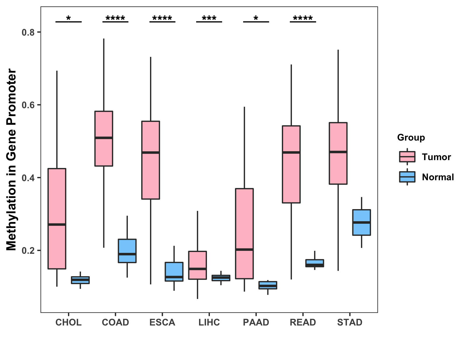 Methylation Level in Colon Cancer HIGH Methylation Level in Rectum Cancer HIGH