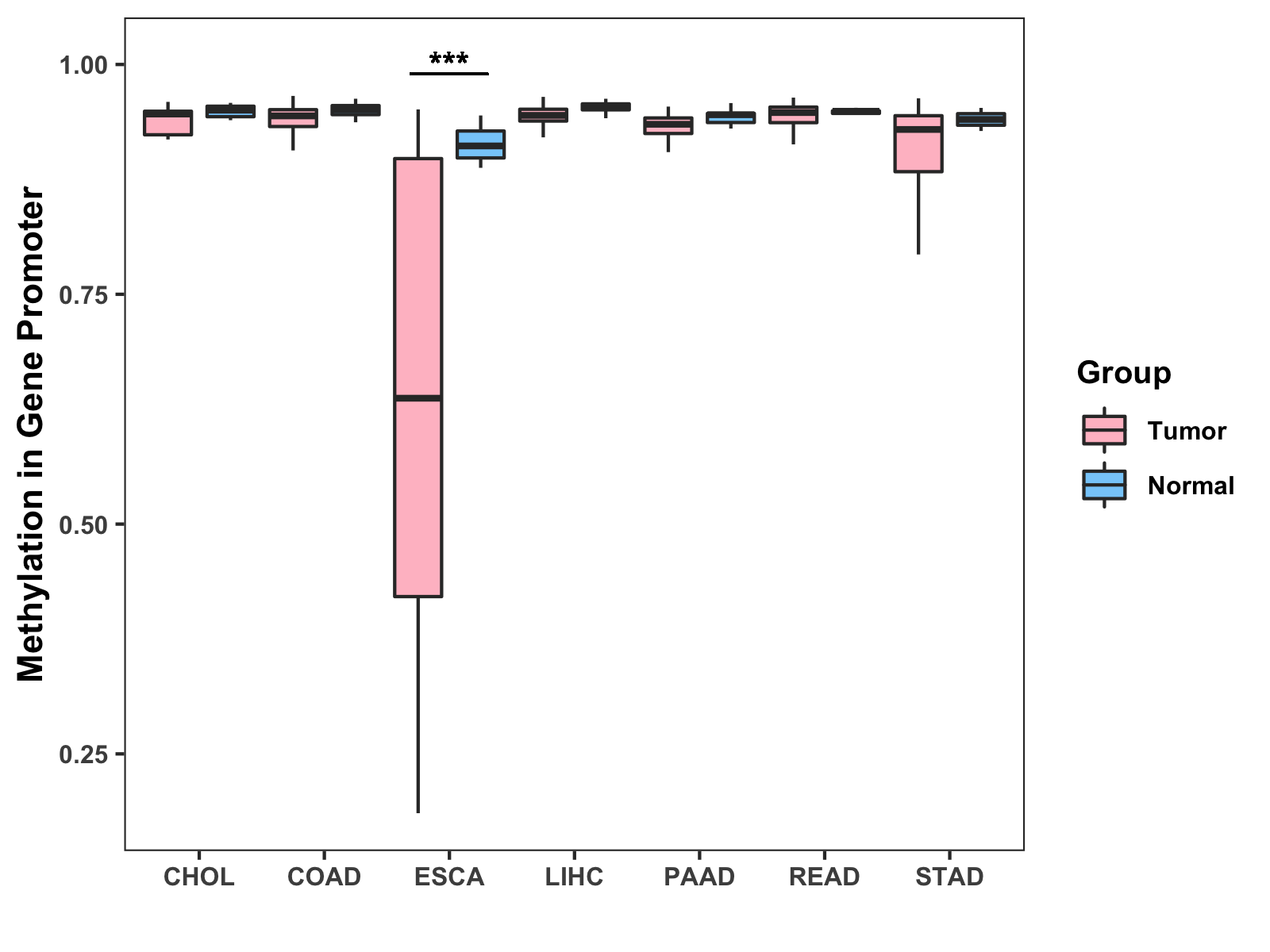 | Box Plot in Esophagus Cancer | Expression-Methylation Scatter Plot in Esophagus Cancer |