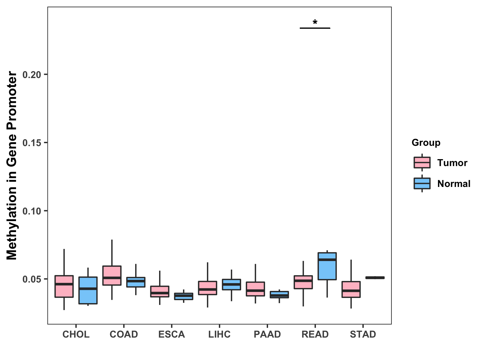 Boxplot of All Gastrointestinal Cancer ( * : 0.01-0.05 , ** : 0.005-0.01 , *** : 0.0001-0.005 , **** : < 0.0001 ) |
