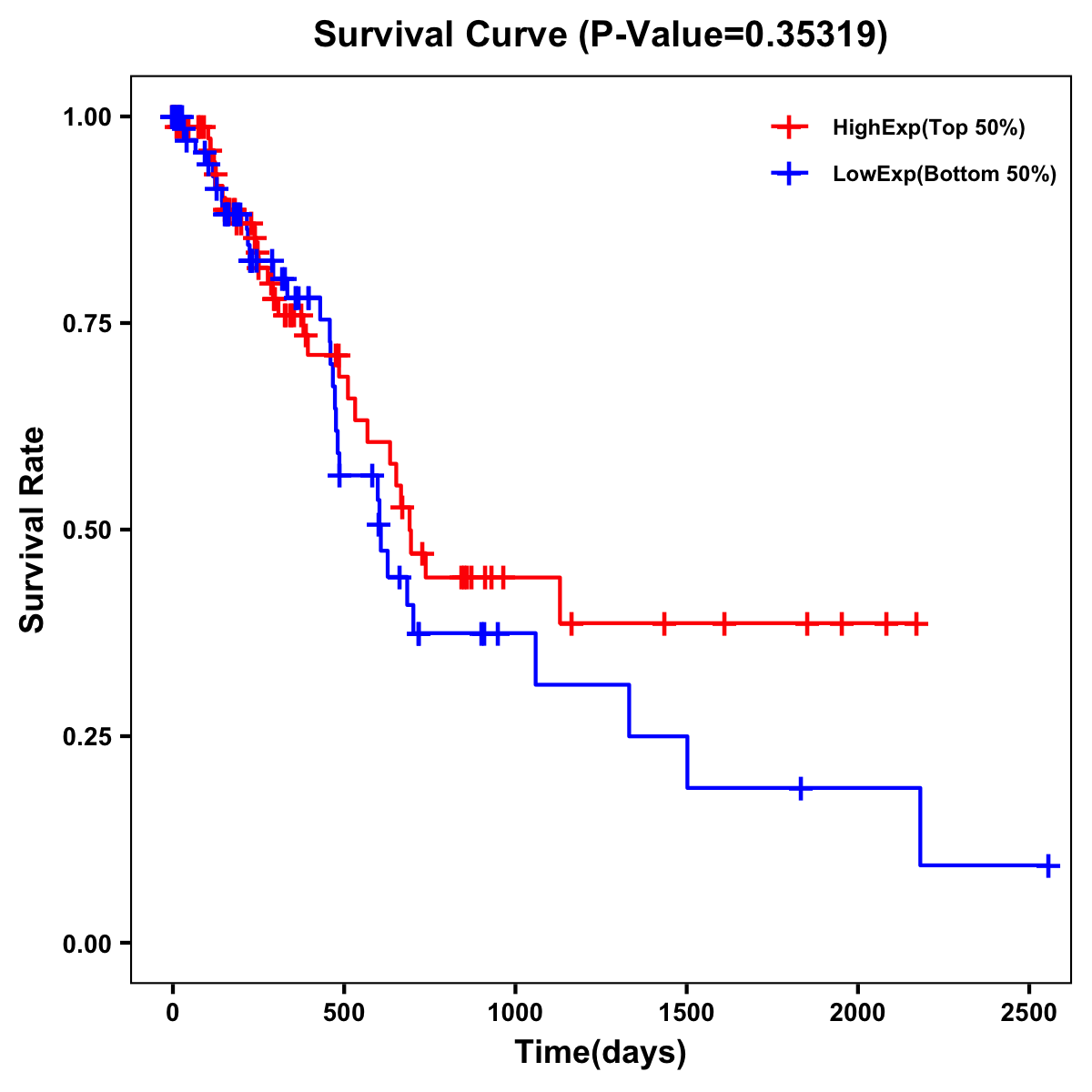 | Survival Curve of Pancreatic Cancer of Expression | Survival Curve of Pancreatic Cancer of Methylation | ||