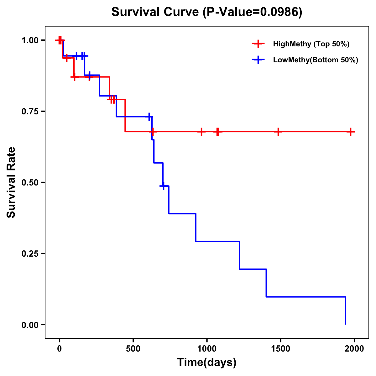 | Survival Curve of Biliary tract Cancer of Expression | Survival Curve of Biliary tract Cancer of Methylation | ||