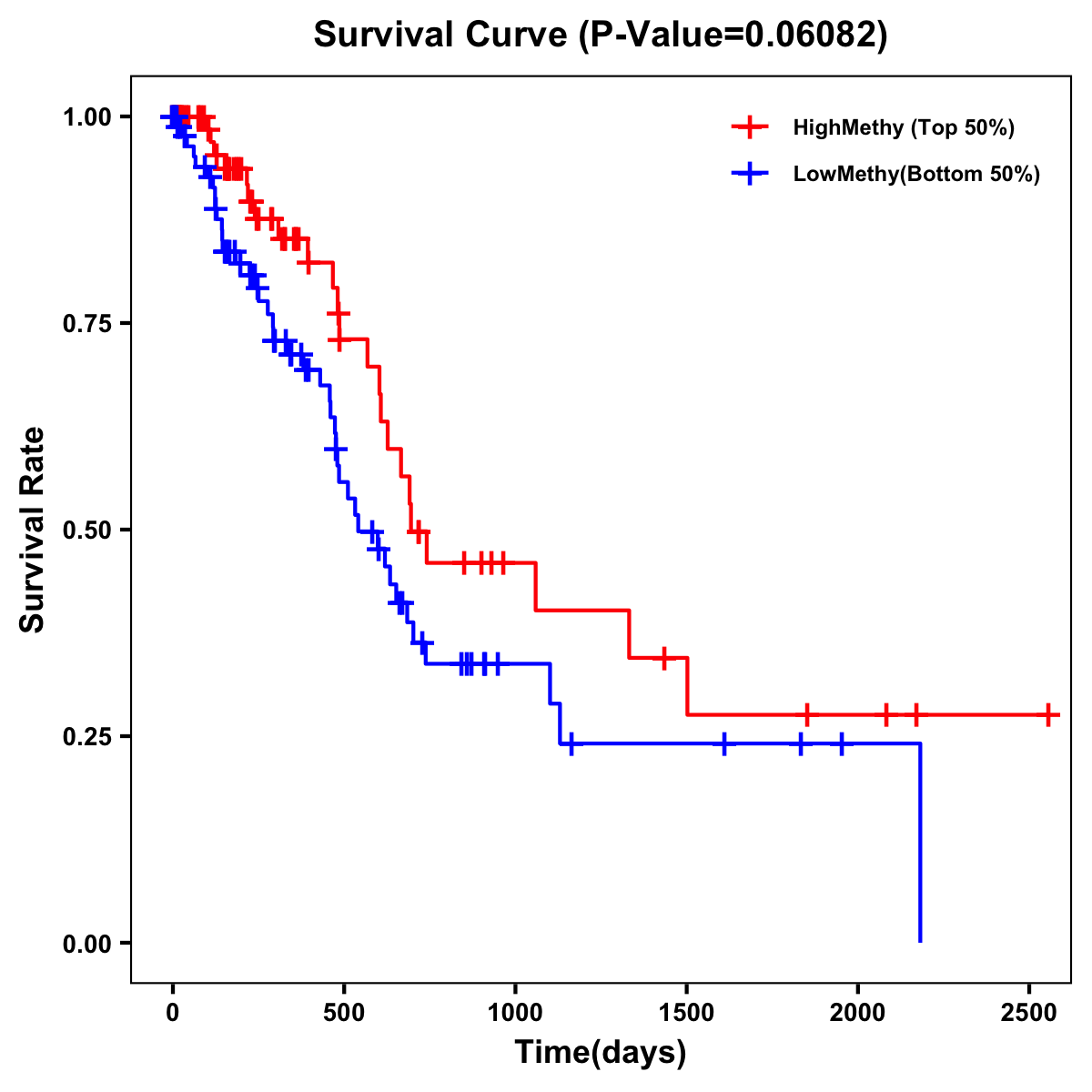 | Survival Curve of Pancreatic Cancer of Expression | Survival Curve of Pancreatic Cancer of Methylation | ||