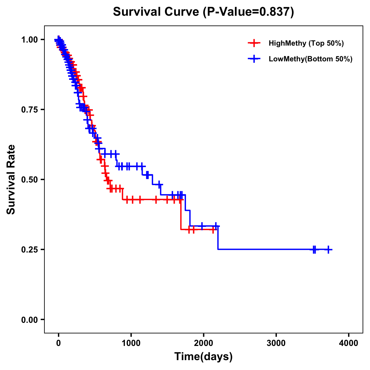 | Survival Curve of Stomach Cancer of Expression | Survival Curve of Stomach Cancer of Methylation | ||