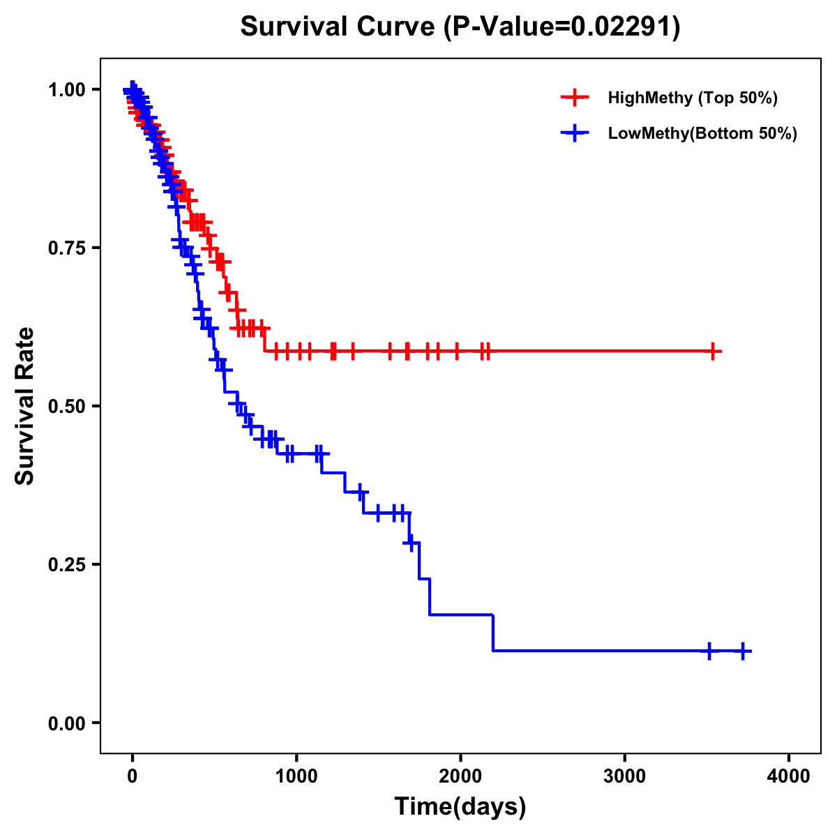 | Survival Curve of Stomach Cancer of Expression | Survival Curve of Stomach Cancer of Methylation | ||