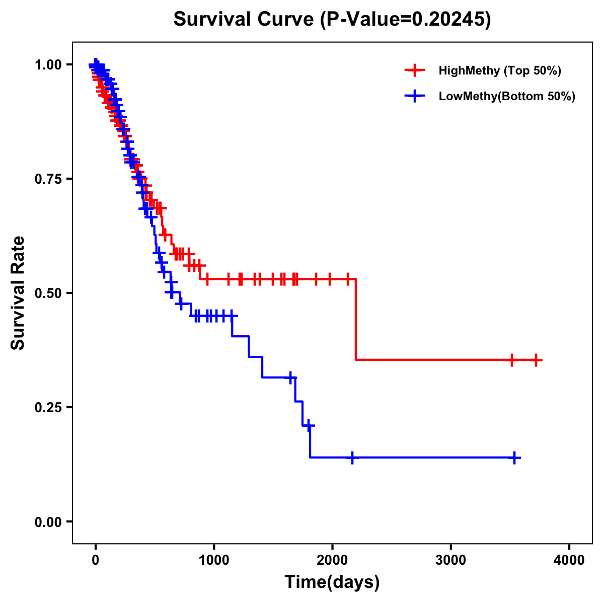 | Survival Curve of Stomach Cancer of Expression | Survival Curve of Stomach Cancer of Methylation | ||