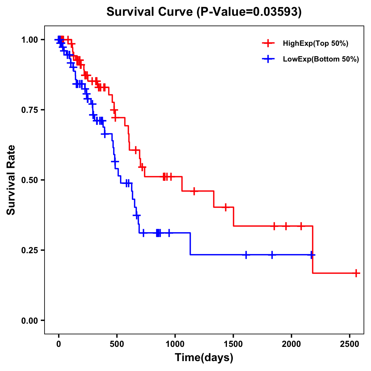 | Survival Curve of Pancreatic Cancer of Expression | Survival Curve of Pancreatic Cancer of Methylation | ||