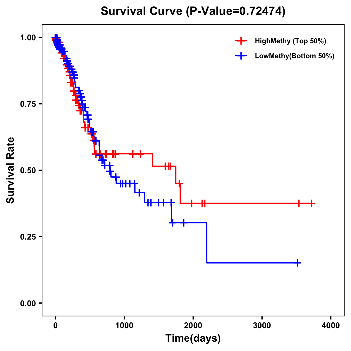 | Survival Curve of Stomach Cancer of Expression | Survival Curve of Stomach Cancer of Methylation | ||