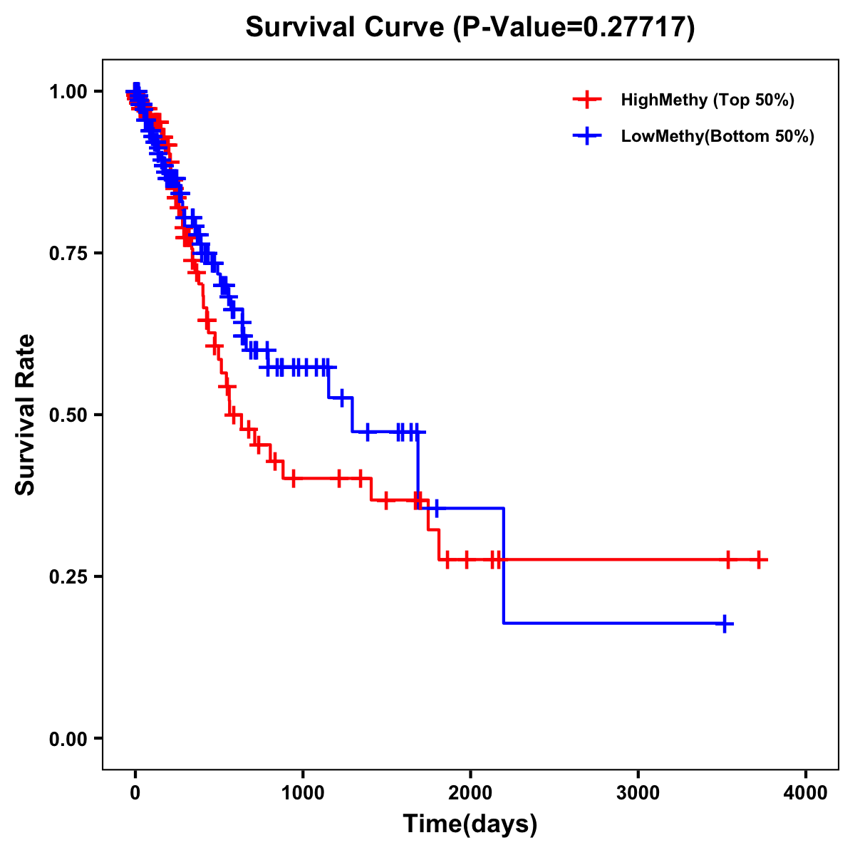 | Survival Curve of Stomach Cancer of Expression | Survival Curve of Stomach Cancer of Methylation | ||