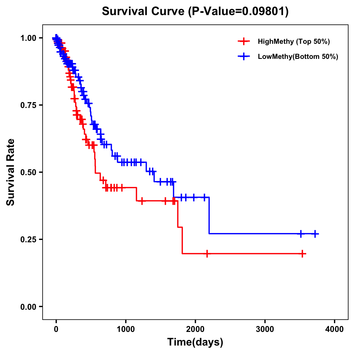 | Survival Curve of Stomach Cancer of Expression | Survival Curve of Stomach Cancer of Methylation | ||