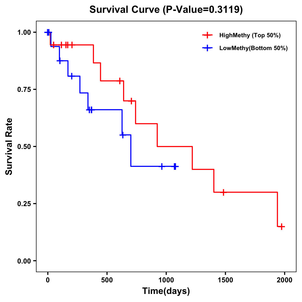 | Survival Curve of Biliary tract Cancer of Expression | Survival Curve of Biliary tract Cancer of Methylation | ||