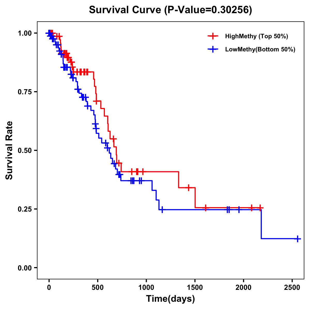 | Survival Curve of Pancreatic Cancer of Expression | Survival Curve of Pancreatic Cancer of Methylation | ||