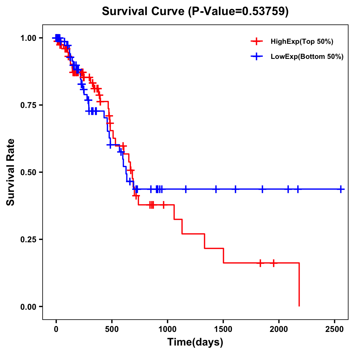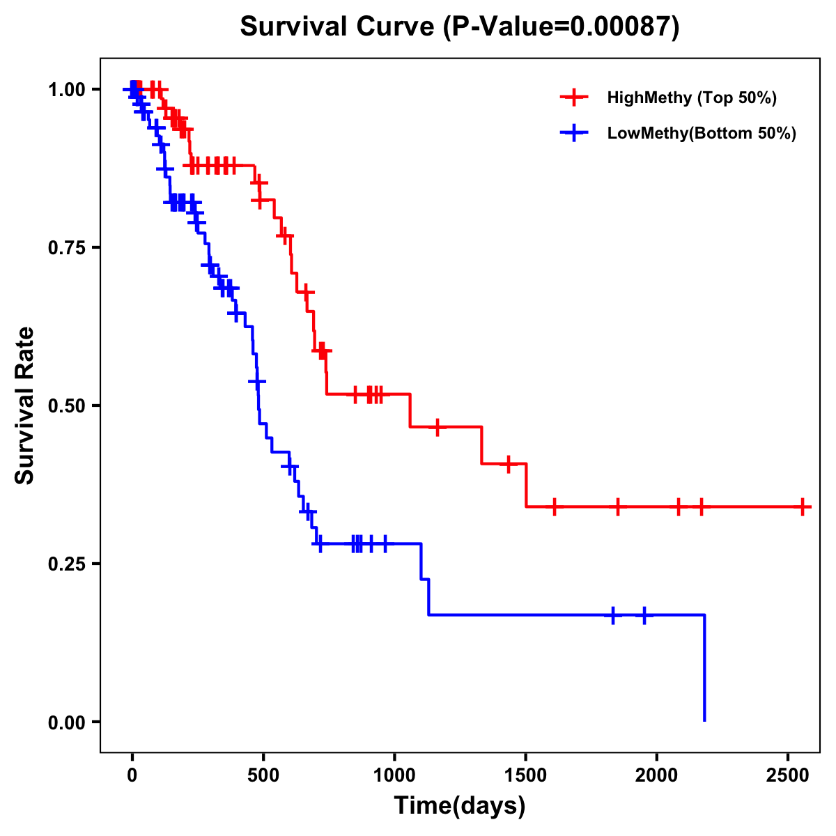 | Survival Curve of Pancreatic Cancer of Expression | Survival Curve of Pancreatic Cancer of Methylation | ||
