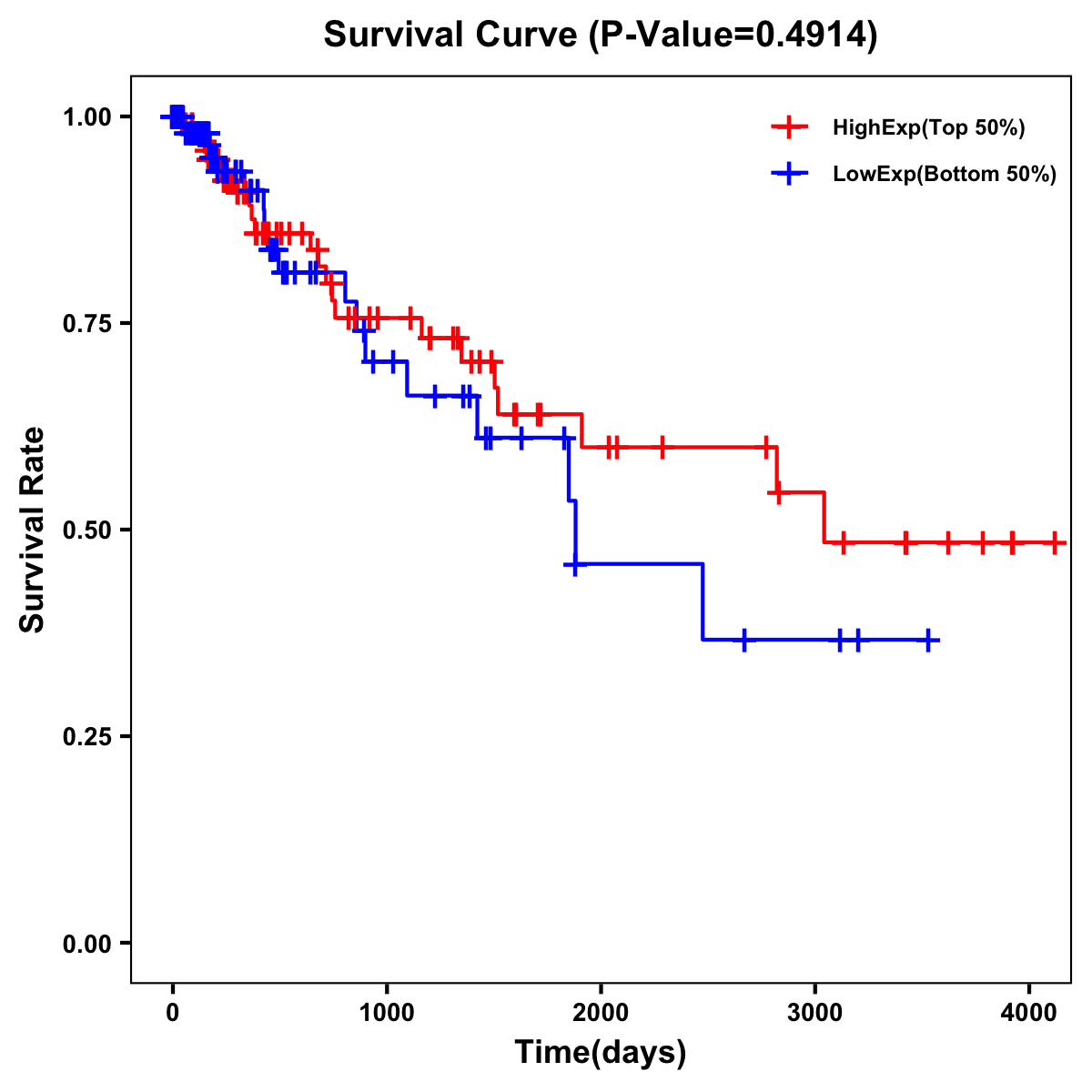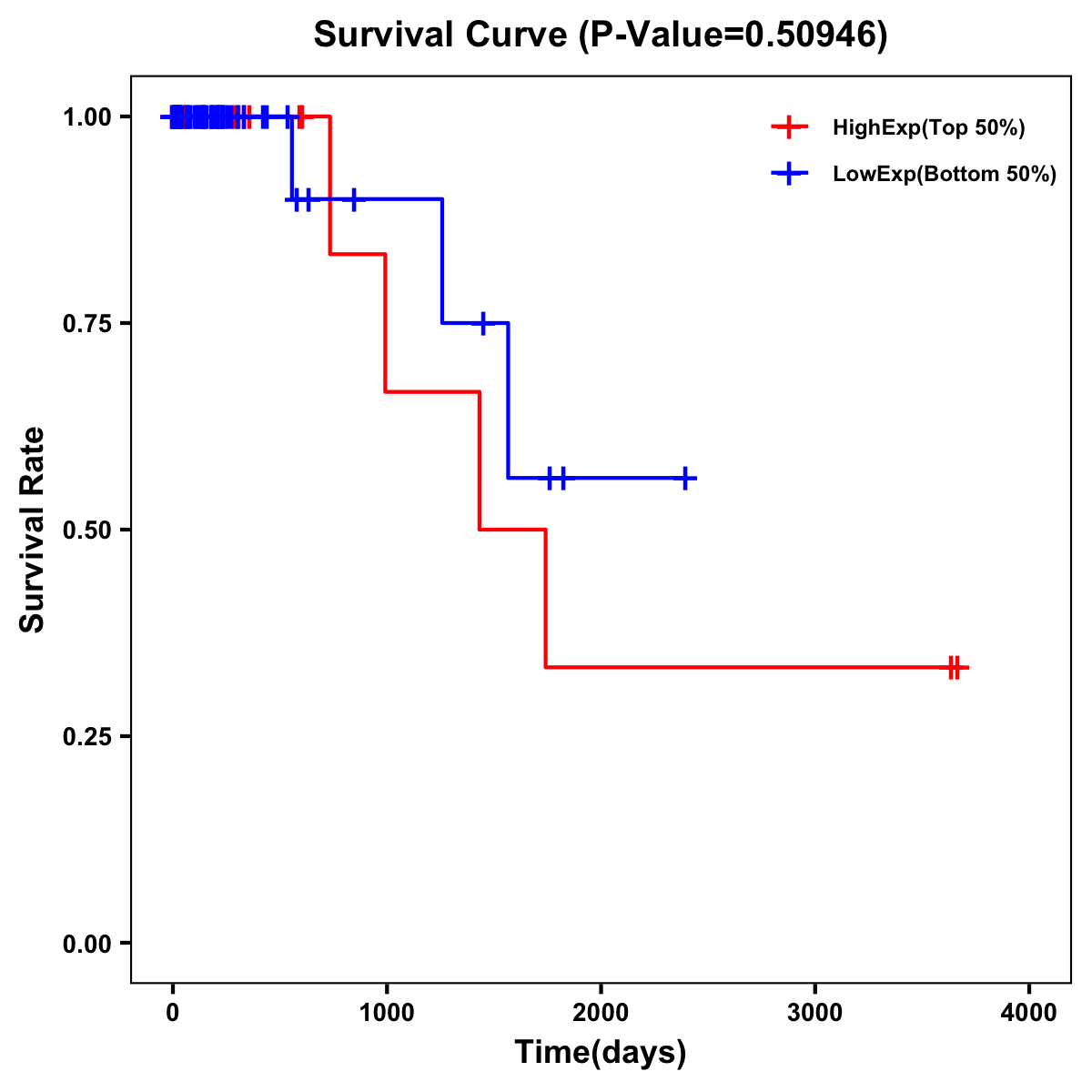 | Survival Curve of Colon Cancer on Expression Level |