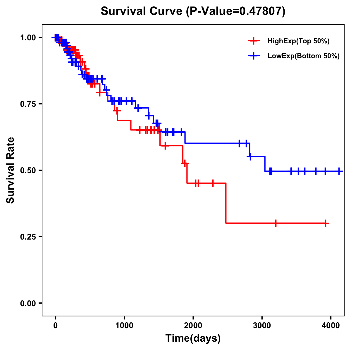 | Survival Curve of Colon Cancer on Expression Level |