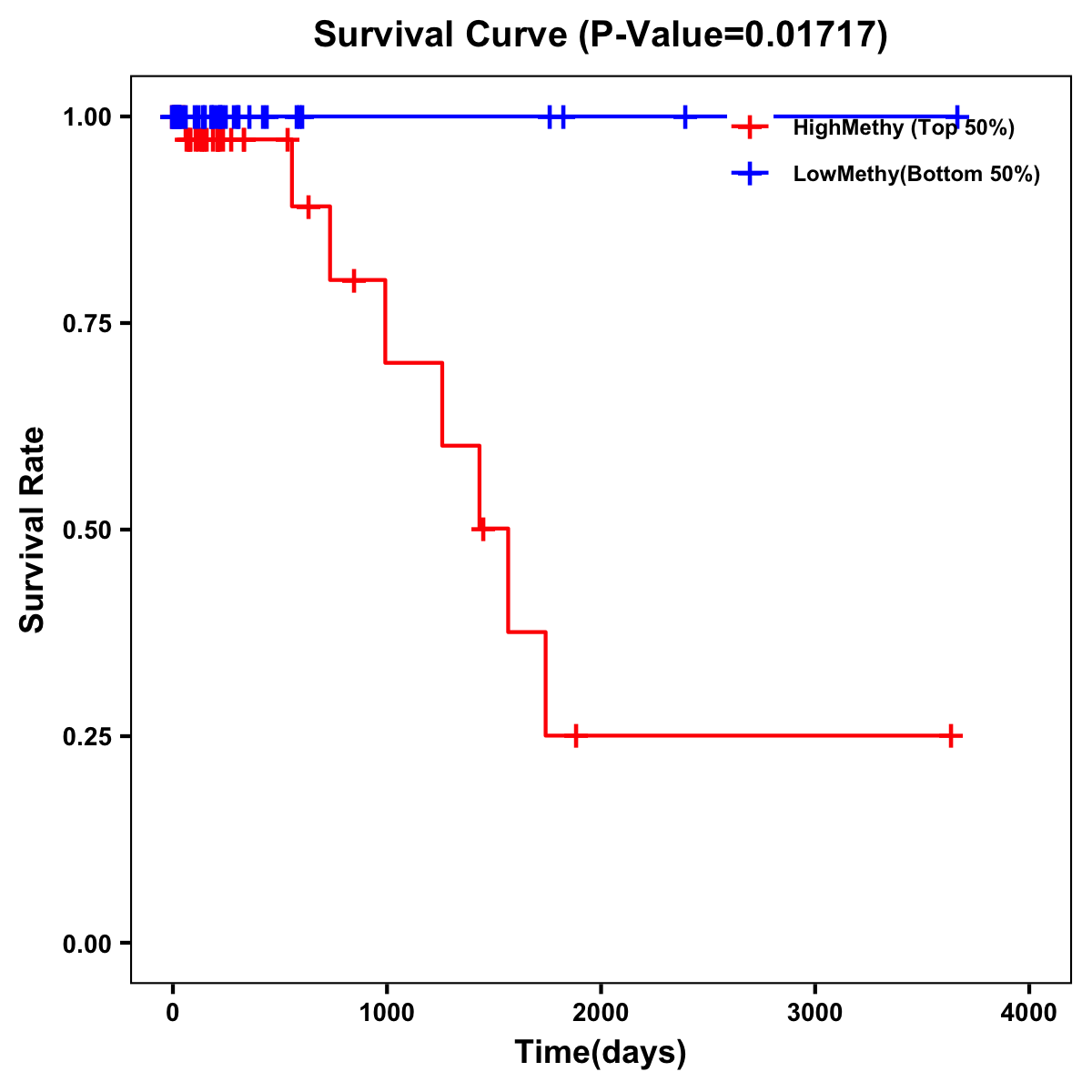 | Survival Curve of Colon Cancer on Methylation Level |