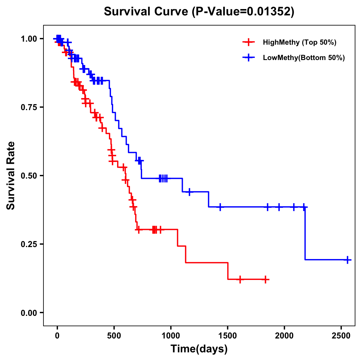 | Survival Curve of Pancreatic Cancer of Expression | Survival Curve of Pancreatic Cancer of Methylation | ||