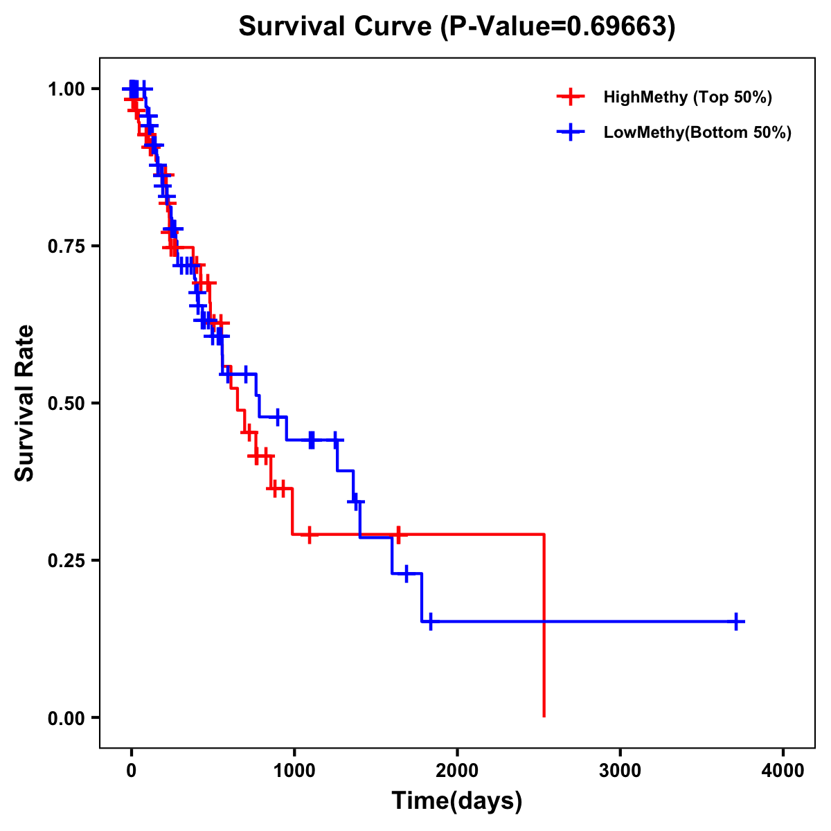 | Survival Curve of Esophagus Cancer of Expression | Survival Curve of Esophagus Cancer of Methylation | ||