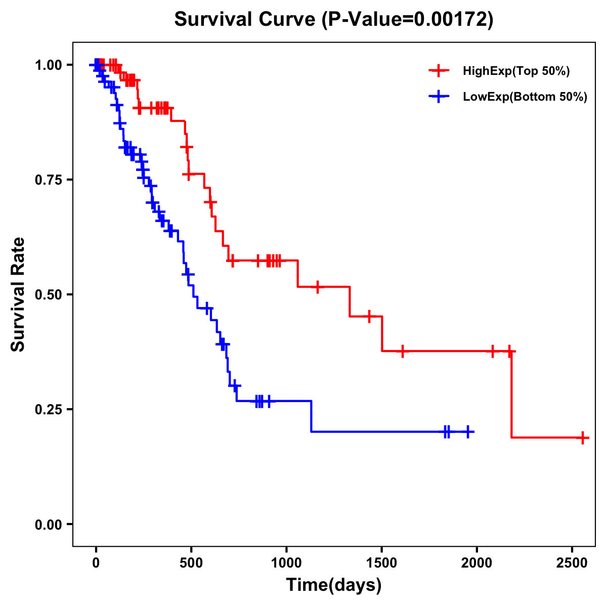 | Survival Curve of Pancreatic Cancer of Expression | Survival Curve of Pancreatic Cancer of Methylation | ||