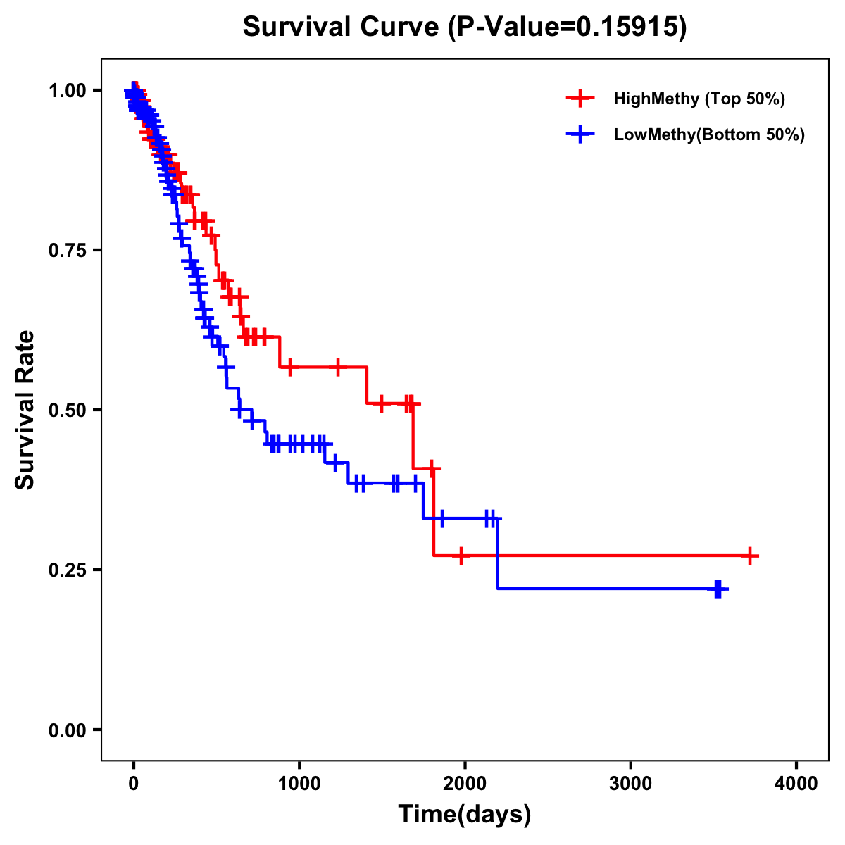 | Survival Curve of Stomach Cancer of Expression | Survival Curve of Stomach Cancer of Methylation | ||