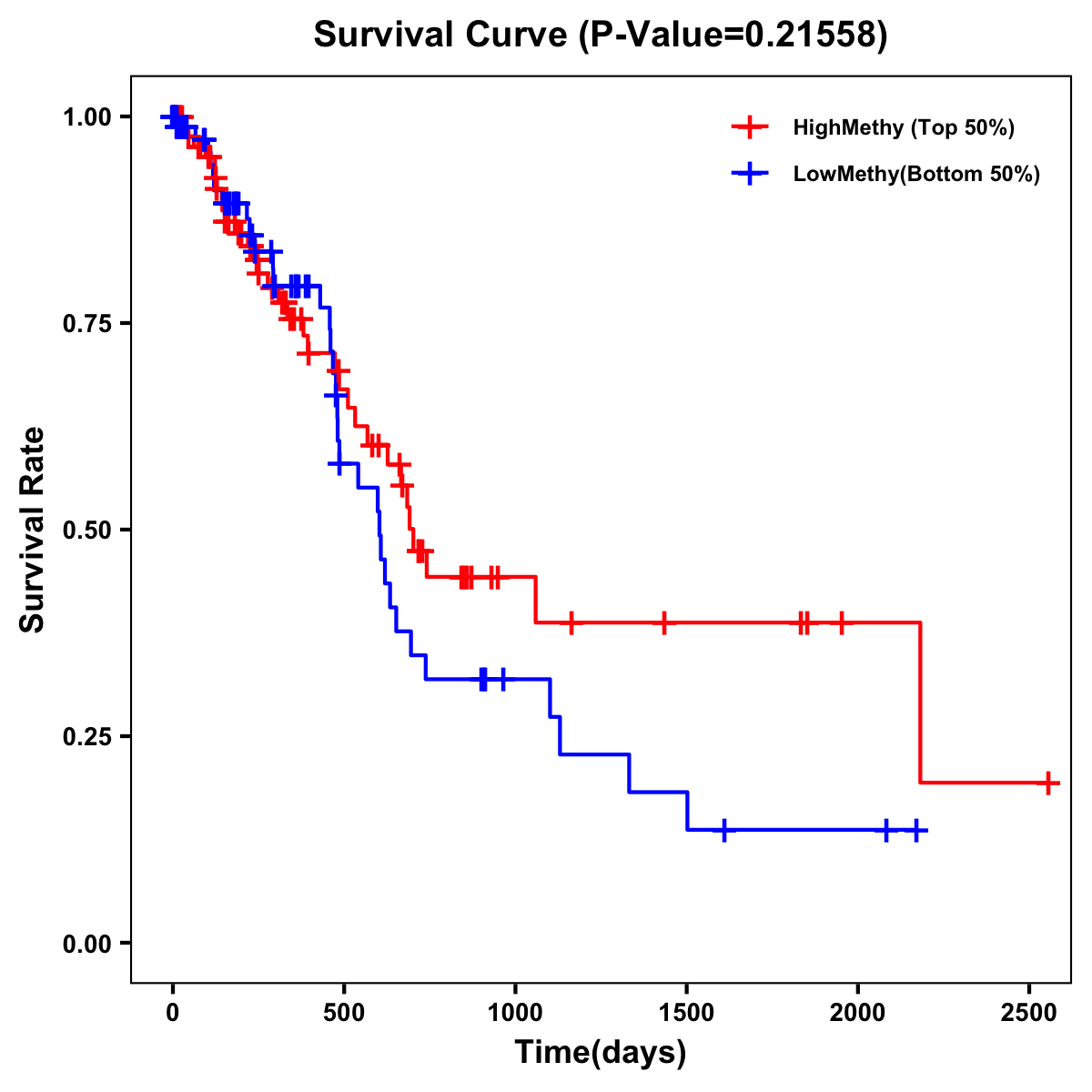 | Survival Curve of Pancreatic Cancer of Expression | Survival Curve of Pancreatic Cancer of Methylation | ||
