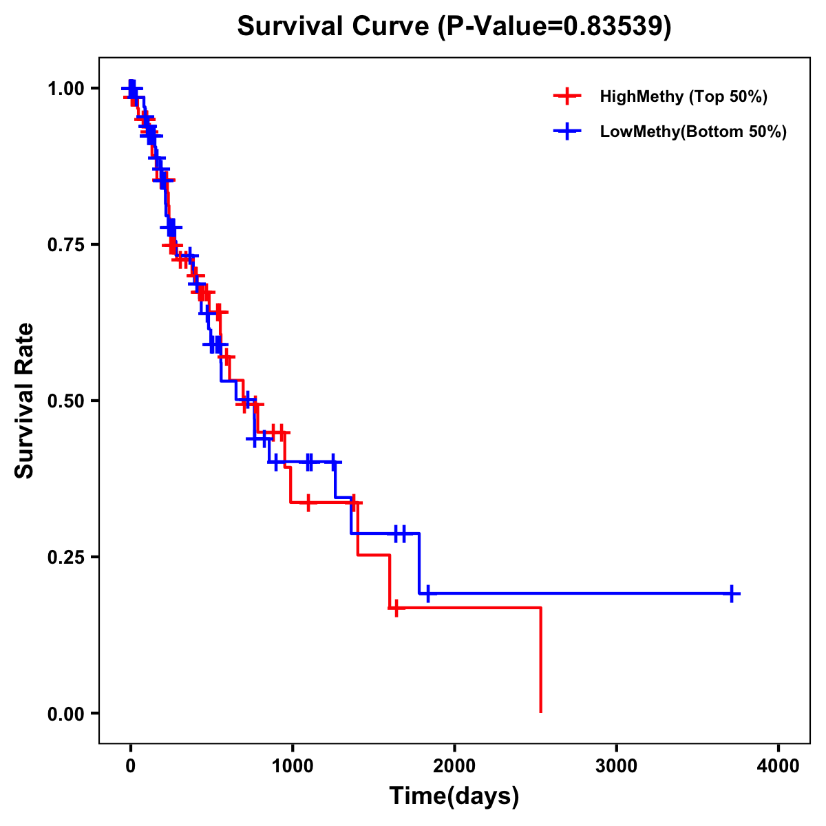 | Survival Curve of Esophagus Cancer of Expression | Survival Curve of Esophagus Cancer of Methylation | ||