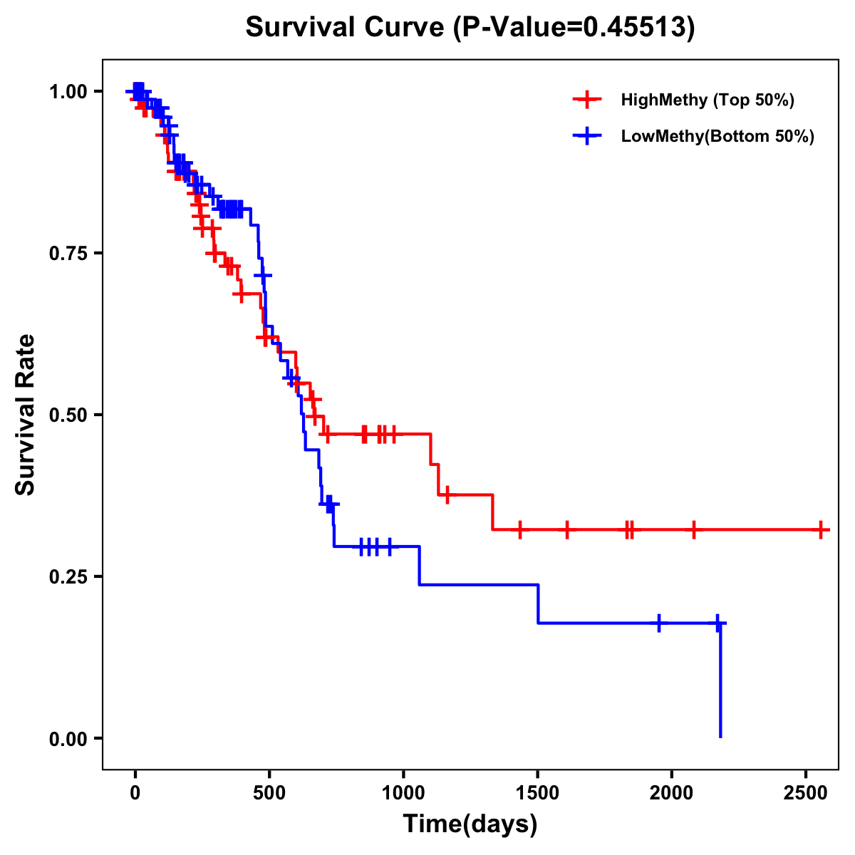 | Survival Curve of Pancreatic Cancer of Expression | Survival Curve of Pancreatic Cancer of Methylation | ||