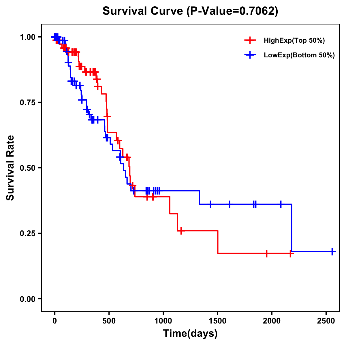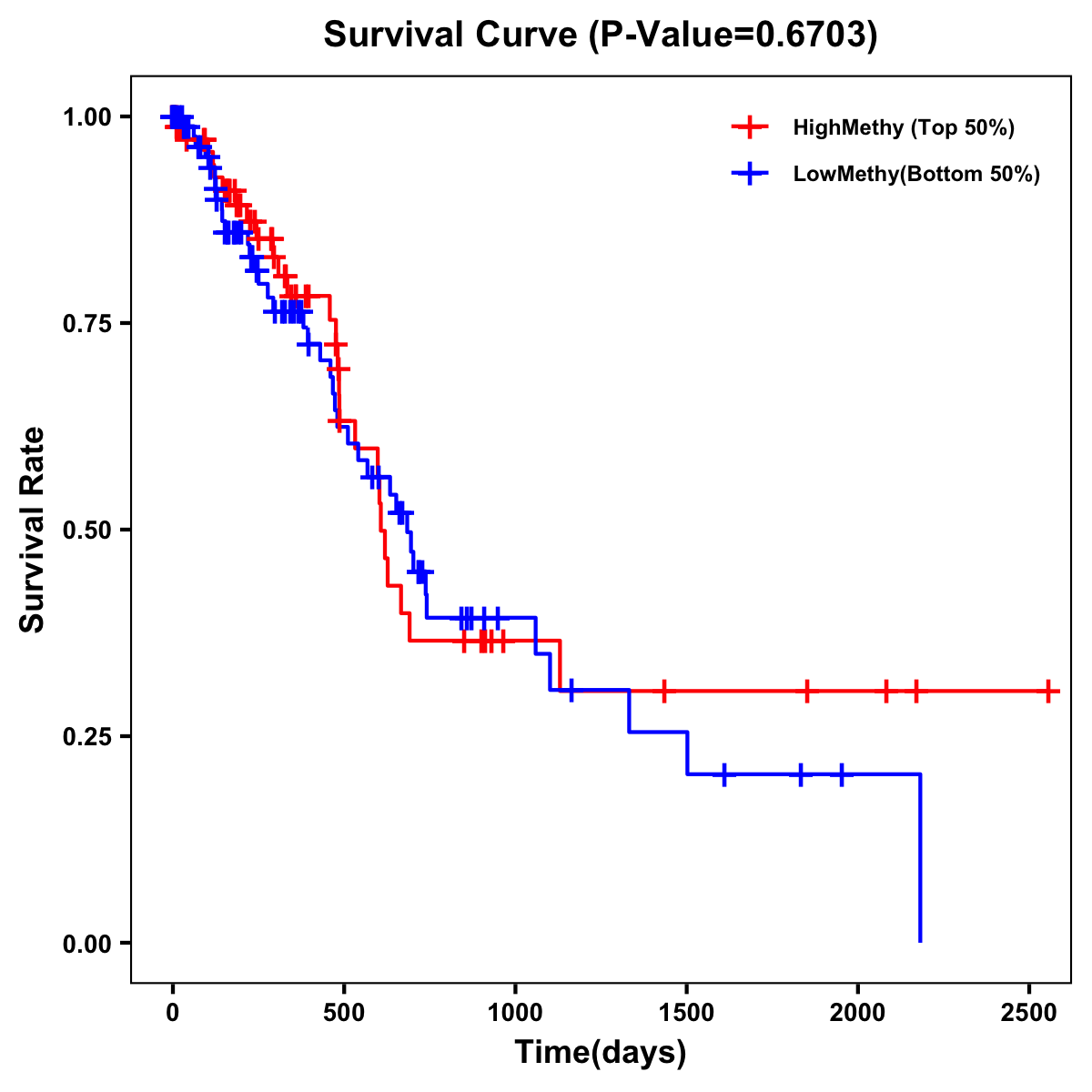 | Survival Curve of Pancreatic Cancer of Expression | Survival Curve of Pancreatic Cancer of Methylation | ||